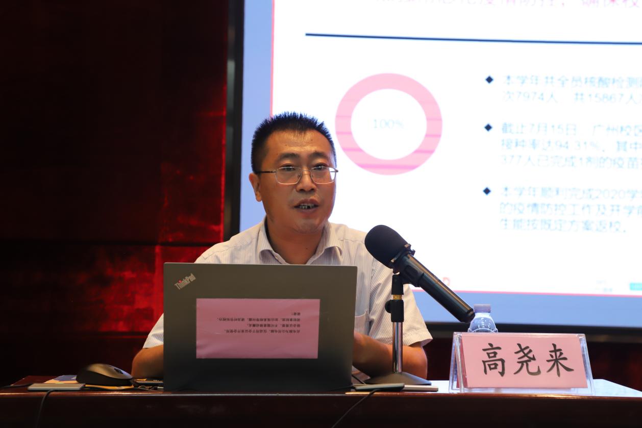 執(zhí)行校長(zhǎng)馬龍海代表學(xué)校領(lǐng)導(dǎo)班子以《牢記使命敢擔(dān)當(dāng) 奮勇?tīng)?zhēng)先再出發(fā)》為主題做學(xué)年工作總結(jié)和下學(xué)年重點(diǎn)工作布置。結(jié)合數(shù)據(jù),馬龍海執(zhí)行校長(zhǎng)回顧和總結(jié)了學(xué)院在“十三五”期間取得的長(zhǎng)足進(jìn)步,并從黨建、疫情防控、創(chuàng)強(qiáng)工程、教學(xué)、科研、師資建設(shè)、招生、學(xué)管、團(tuán)委建設(shè)、產(chǎn)教融合、行政后勤、云浮校區(qū)建設(shè)和國(guó)際交流共13個(gè)方面對(duì)學(xué)院上學(xué)年的工作進(jìn)行全面總結(jié)。表示在董事會(huì)的支持下,在學(xué)校黨委堅(jiān)強(qiáng)領(lǐng)導(dǎo)下,全體師生員工攻堅(jiān)克難、砥礪奮進(jìn),學(xué)校發(fā)展進(jìn)入了一個(gè)新階段。