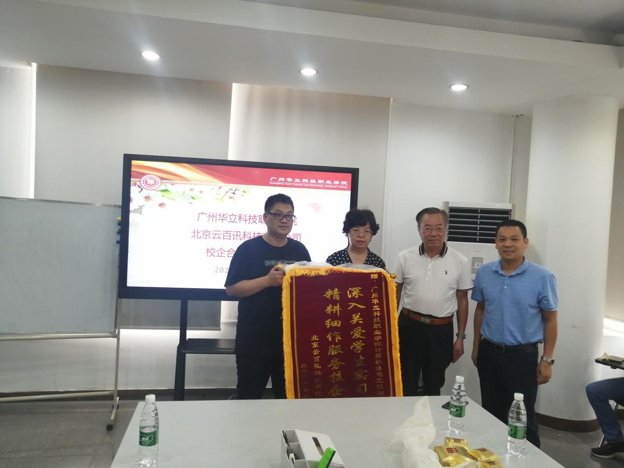 為深化產(chǎn)教融合、校企合作,探索校企合作的長效機(jī)制,2021年9月13日上午,廣州華立科技職業(yè)學(xué)院與北京云百訊科技有限公司校企合作授牌儀式在云百訊佛山分公司舉行,我校黨委林偉健書記、計(jì)算機(jī)學(xué)院院長王建華教授、校外副主任蔡文欽、黃志強(qiáng)老師、云百訊公司趙金華副經(jīng)理、業(yè)務(wù)部經(jīng)理焦經(jīng)理及我院2019級實(shí)習(xí)生代表參加了此次授牌儀式。