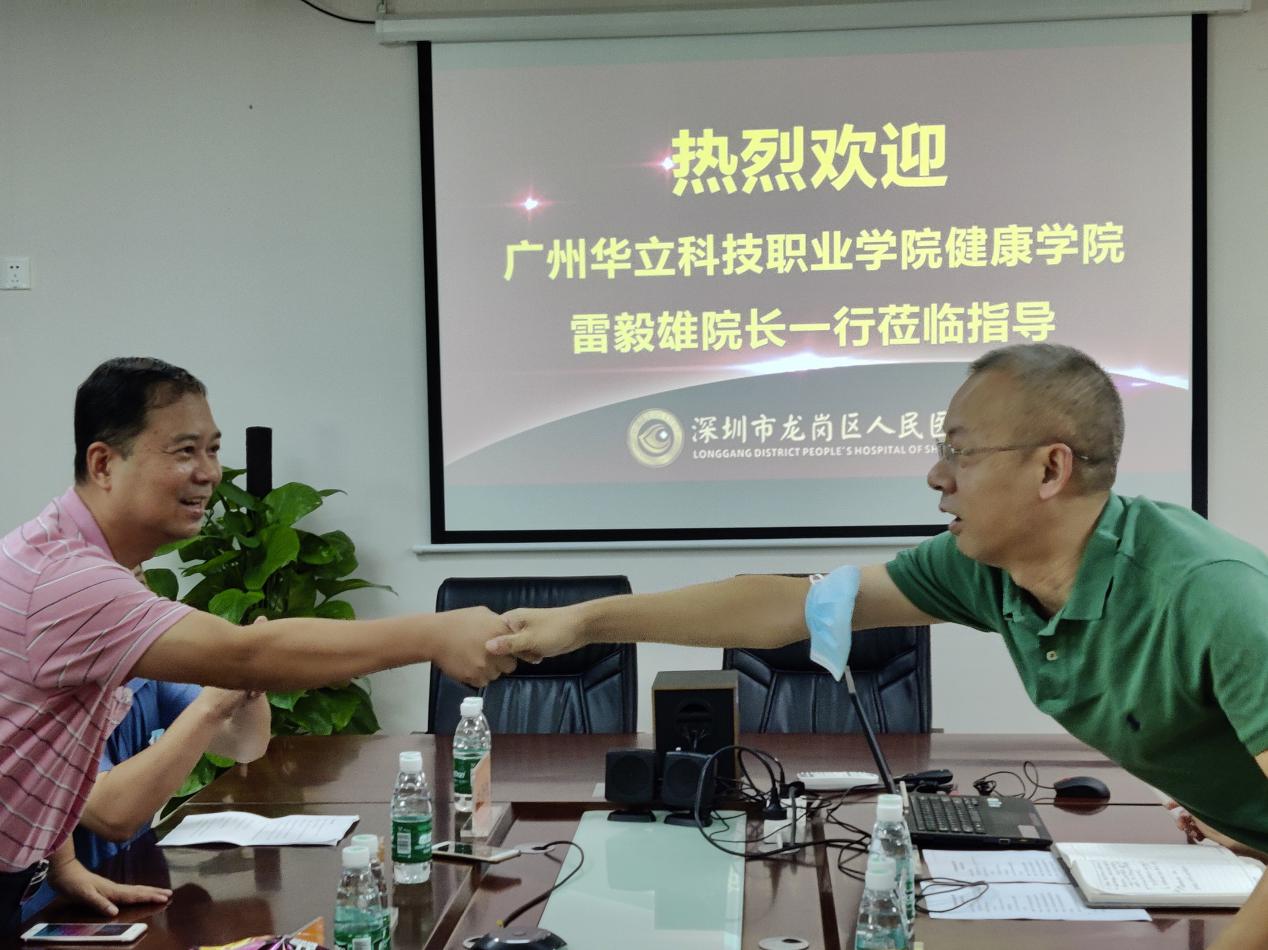 深圳龍崗區(qū)人民醫(yī)院馮景副院長對雷院長一行表示熱烈的歡迎。會(huì)上高度贊揚(yáng)了本屆實(shí)習(xí)生,表示即使疫情期間需要每天加班也從不叫苦喊累、服從安排毫無怨言,學(xué)生綜合素養(yǎng)品質(zhì)非常高。