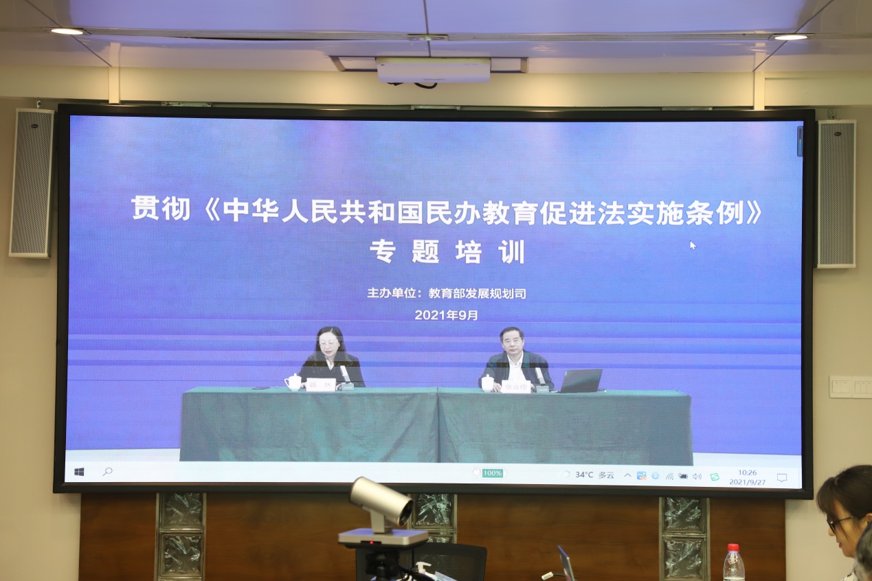 為深入貫徹落實(shí)新修訂的《中華人民共和國民辦教育促進(jìn)法實(shí)施條例》(以下簡稱《實(shí)施條例》),進(jìn)一步落實(shí)好黨的教育方針,做好《實(shí)施條例》普法宣貫工作,依法依規(guī)開展教育教學(xué)活動(dòng),防范化解民辦學(xué)校各種辦學(xué)風(fēng)險(xiǎn),9月27日,教育部發(fā)展規(guī)劃司開展《中華人民共和國民辦教育促進(jìn)法實(shí)施條例》專題培訓(xùn)。學(xué)校執(zhí)行校長馬龍海、黨委書記林偉健、校長助理郭仲先等在校領(lǐng)導(dǎo)率各職能部門負(fù)責(zé)人通過遠(yuǎn)程視頻會(huì)議系統(tǒng)集體參加了專題培訓(xùn)學(xué)習(xí)。