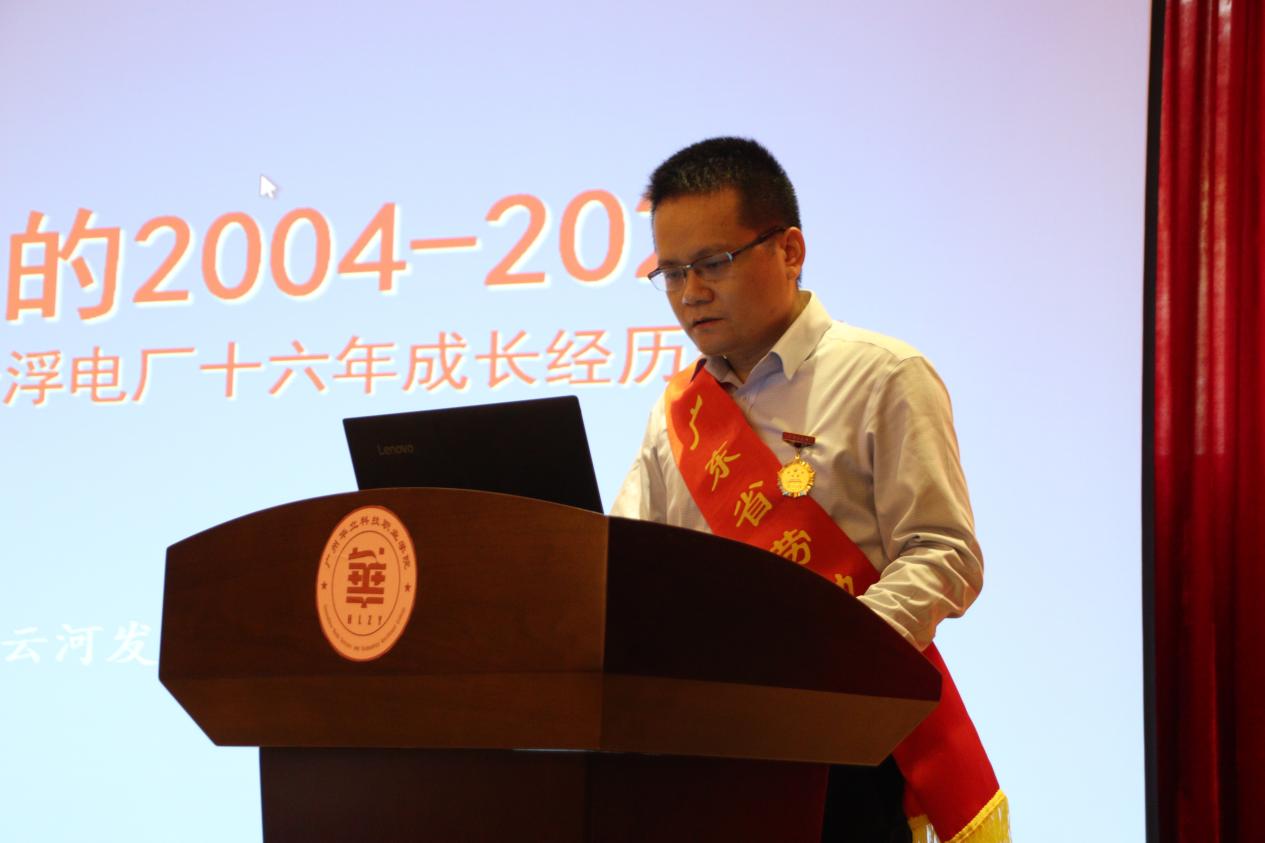 廣東省勞動模范、廣東電網(wǎng)云浮供電局高級工程師陳建泉,以《開拓創(chuàng)新,自強不息,迎難而上,永攀高峰》為題,聯(lián)系在云浮供電局的工作和成長歷程,分享了自己為什么熱衷于技術(shù)改革創(chuàng)新。他認為,一開始覺得只要能夠解決生產(chǎn)實際問題,就堅持去做,后來是發(fā)現(xiàn)每一次的改造和創(chuàng)新都能夠帶來很好的應用效果,并且得到鼓勵和支持,就更有動力去做這件事。陳建泉說,榮譽源自付出,沒有一件事情是輕松,只有盡心盡力,樹立正確三觀,勇攀高峰,才能創(chuàng)造奇跡。如果說旅游是為了欣賞風景,其實在工地上也可以欣賞風景。他勉勵同學們樹立正確的擇業(yè)觀,加強實踐,不斷學習。只有這樣,才能創(chuàng)造輝煌。