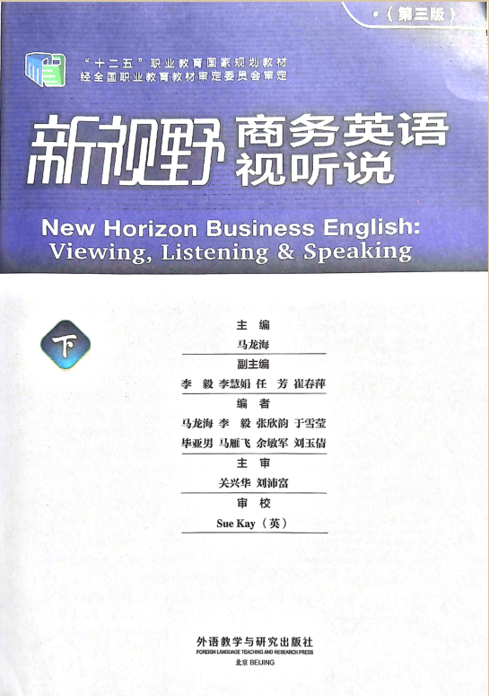 《新視野商務(wù)英語視聽說》于2006年5月問世,歷經(jīng)3次修訂再版,先后入選“十一五”國家級規(guī)劃教材、教育部“普通高等教育精品教材”、“十二五”職業(yè)教育國家規(guī)劃教材和“十三五”職業(yè)教育國家規(guī)劃教材。目前使用該教材的高職和本科院校達到300余所, 累計使用的學(xué)生數(shù)達到67萬余人。