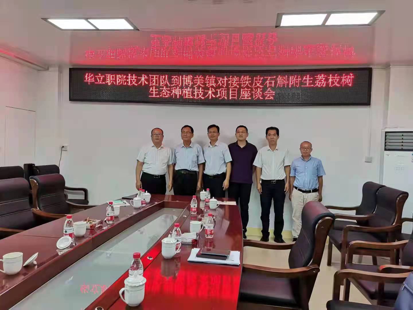 2021年8 月31 日,李向林教授團隊深入陸豐市博美鎮(zhèn),與鎮(zhèn)委、鎮(zhèn)政府、鎮(zhèn)農委辦、部分村委和省委駐鎮(zhèn)幫扶工作隊負責人等同志開展交流,組織召開了鐵皮石斛附生荔枝樹生態(tài)種植技術項目對接座談會。會上鎮(zhèn)黨委書記陳少游和鎮(zhèn)長盧漢陽介紹了鎮(zhèn)荔枝樹種植情況和發(fā)展需求,我校團隊詳細介紹鐵皮石斛附生荔枝樹生態(tài)種植技術的環(huán)境條件需求,產業(yè)的投入、產出概況,市場前景等。會議圍繞鐵皮石斛附生荔枝樹生態(tài)種植技術項目的試點選擇、種植規(guī)模、實施路線、銷售渠道等方面進行了初步研討。