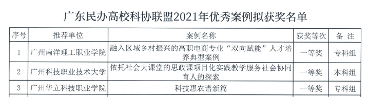 喜報(bào):我校榮獲廣東省民辦教育科技與社會(huì)服務(wù)優(yōu)秀案例一等獎(jiǎng)