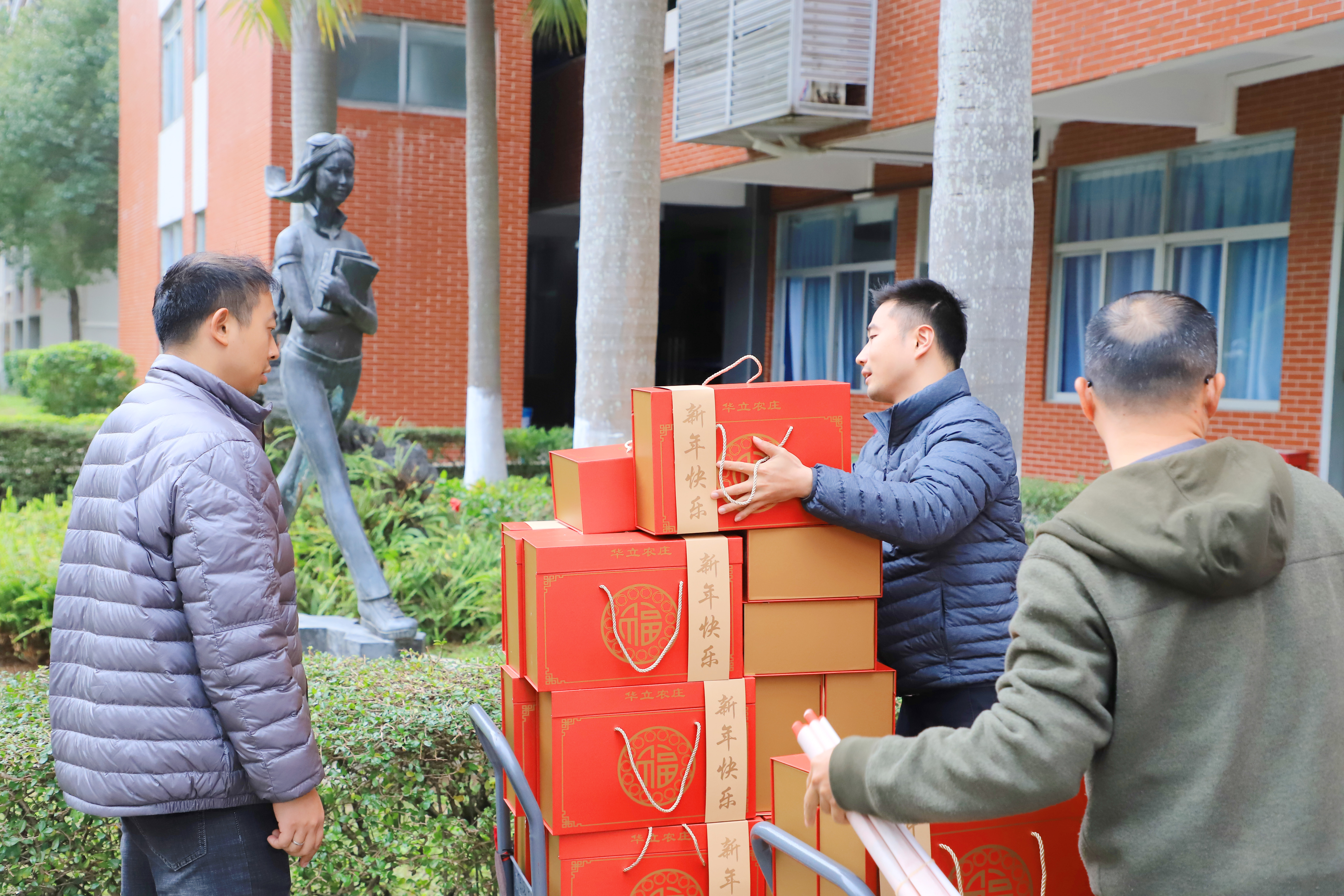 虎年新春佳節(jié)來臨之際,學(xué)校為向在華立園辛勒奮斗的職院教工的表示感謝和關(guān)懷,由校工會在臘八節(jié)下午組織各部門工會小組,在學(xué)校綜合樓廊廳向所有教工發(fā)放華立園虎年精心精制的年貨禮盒,讓返鄉(xiāng)以及留穗過春節(jié)的教工感受華立園的關(guān)心和虎年新春的溫暖。