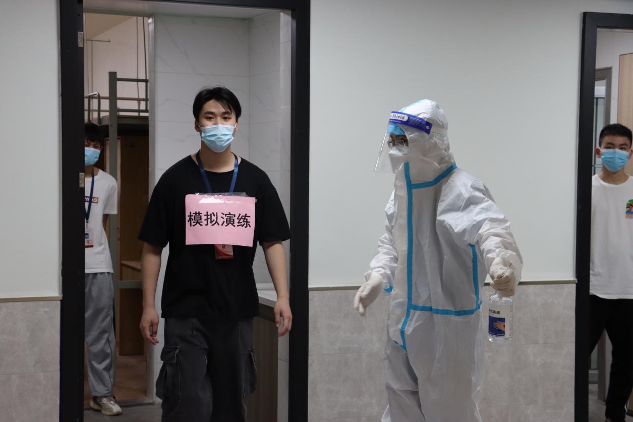 根據(jù)腳本設(shè)定的模擬情況,接到有次密接者通知后,學(xué)校立即啟動疫情防控應(yīng)急預(yù)案。云浮校區(qū)疫情防控工作領(lǐng)導(dǎo)小組、各工作小組及部門有效聯(lián)動,密切配合,嚴格按照校園疫情防控應(yīng)急措施,在較短時間內(nèi)高效完成了對緊急情況的應(yīng)對和處置。演練過程中,學(xué)校師生認真配合,自覺維護演練秩序,整個演練流程順暢有序。