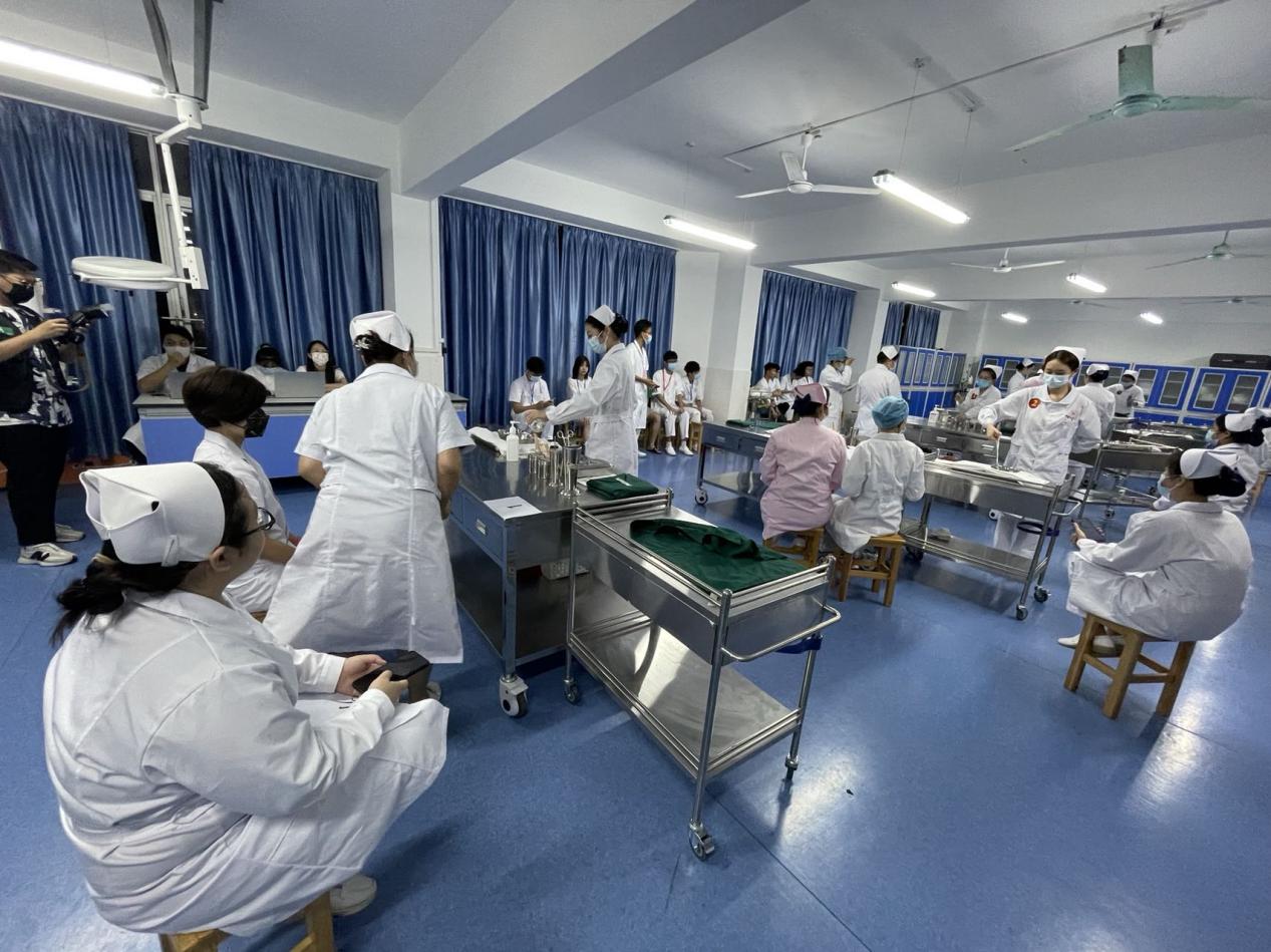 14名教師和107名學(xué)生參加了這次活動。學(xué)校督導(dǎo)辦副主任曾紀(jì)杰教授等督導(dǎo)親臨現(xiàn)場指導(dǎo)。經(jīng)過5月11日“單人徒手心肺復(fù)蘇術(shù)”項目比賽和5月12日“無菌技術(shù)操作”項目比賽,本次活動圓滿落下帷幕。