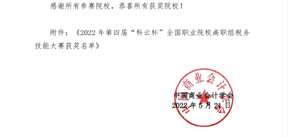 我校財會學子榮獲2022年第四屆“科云杯” 全國職業(yè)院校高職組稅務技能大賽一等獎