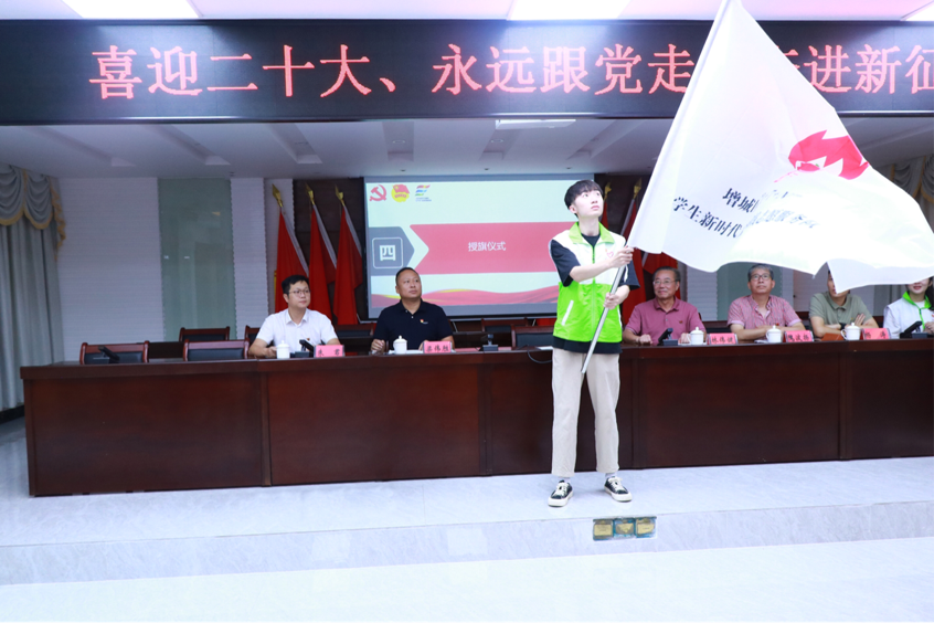 本次活動(dòng)得到了派潭鎮(zhèn)的大力支持,派潭鎮(zhèn)黨委卜永彪書記、梁偉勝副鎮(zhèn)長(zhǎng)和派潭鎮(zhèn)相關(guān)部門(單位)負(fù)責(zé)同志出席宣講活動(dòng)。在啟動(dòng)儀式上,派潭鎮(zhèn)黨委書記卜永彪為志愿者隊(duì)伍授旗。廣州華立科技職業(yè)學(xué)院團(tuán)委朱君書記介紹了實(shí)踐志愿服務(wù)隊(duì)的工作內(nèi)容和服務(wù)項(xiàng)目,項(xiàng)目涵蓋理論宣講、安全教育、黨史學(xué)習(xí)教育等。