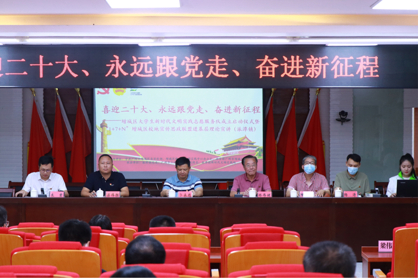 7月20日上午,我校黨委書記林偉健教授帶領(lǐng)“鄉(xiāng)約一夏,遇踐青春”+理論普及宣講實(shí)踐團(tuán)暨增城區(qū)“1+7+N”大學(xué)生新時(shí)代文明實(shí)踐志愿服務(wù)隊(duì)隊(duì)員代表一行,前往增城區(qū)派潭鎮(zhèn)開展增城區(qū)大學(xué)生新時(shí)代文明實(shí)踐志愿服務(wù)隊(duì)成立啟動(dòng)儀式暨派潭鎮(zhèn)第一場(chǎng)基層理論宣講會(huì)。