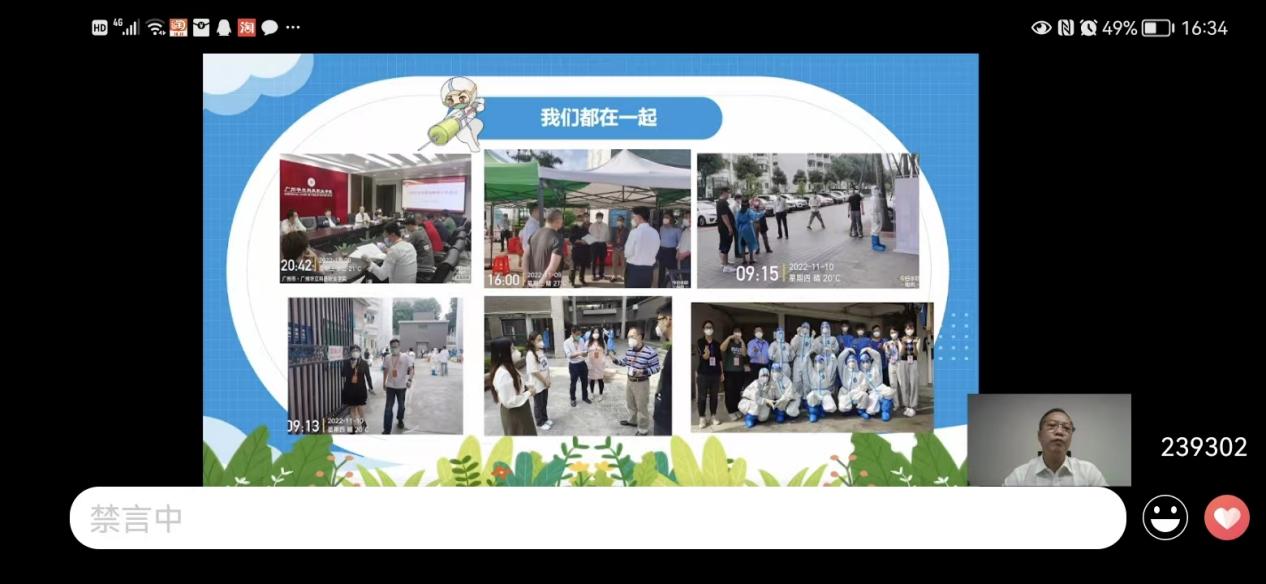 陳書記首先給我們介紹了目前疫情防控情況,表示新冠肺炎疫情爆發(fā)以來,中國人民用可歌可泣的戰(zhàn)“疫”實(shí)績向國際社會傳遞了中國戰(zhàn)“疫”必勝的信心和希望,讓世界看到了中國的責(zé)任與擔(dān)當(dāng)。然而,隨著病毒不斷變異,本輪疫情來勢洶洶。廣州市正面臨抗疫三年以來最復(fù)雜、最嚴(yán)峻的疫情,而我校也面臨抗疫三年以來最艱難的時刻。陳書記向大家發(fā)出疑問:在這關(guān)鍵時刻,我們應(yīng)該如何做好防疫,同心協(xié)力打贏這場疫情防控攻堅戰(zhàn)呢?