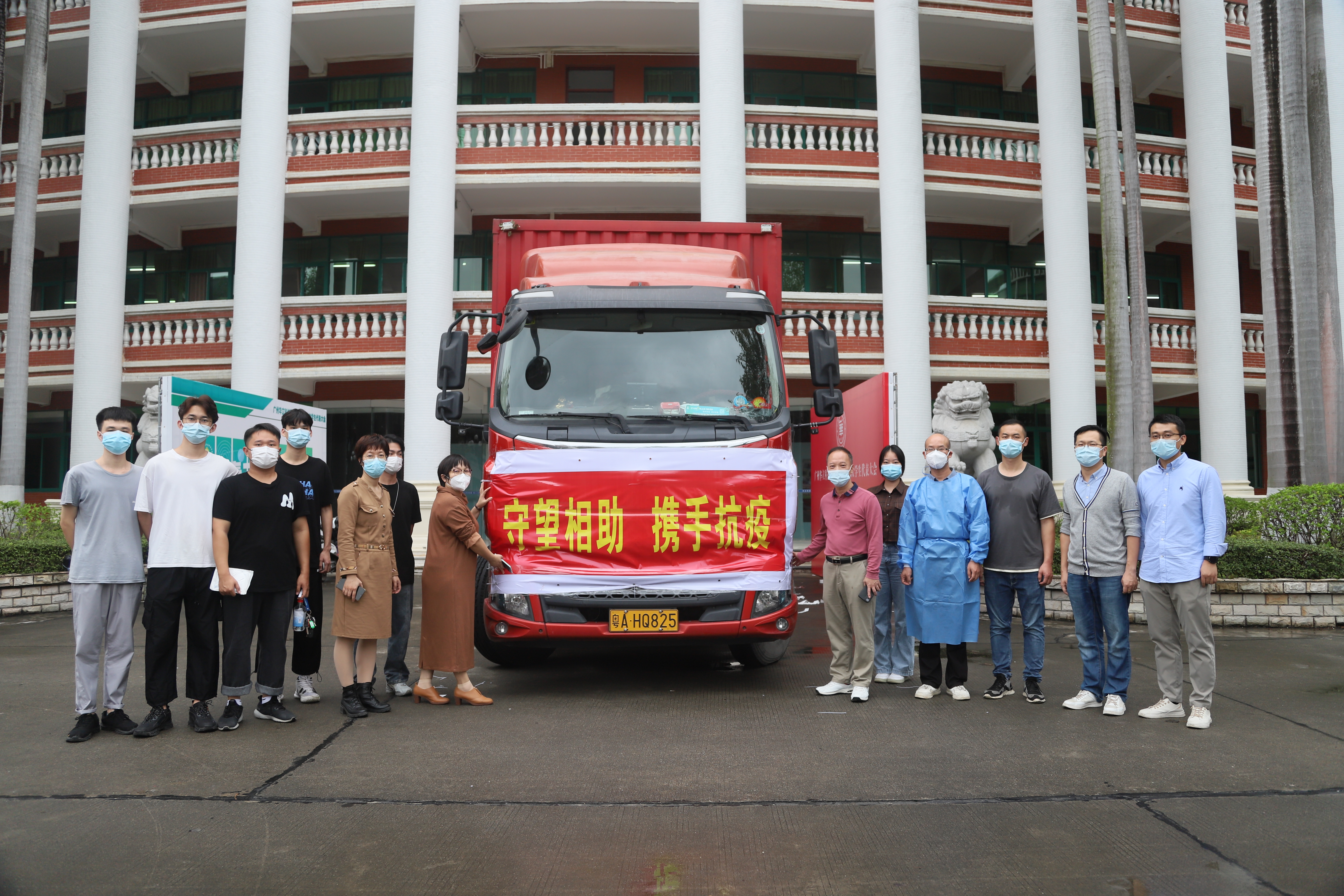 11月22日下午,一輛大型貨運(yùn)車在華立職院廣州校區(qū)圖書館前整裝待發(fā),車身上“守望相助 攜手抗疫”“同舟共濟(jì) 抗擊疫情 華立職院與廣東輕工在一起”的橫幅格外醒目。