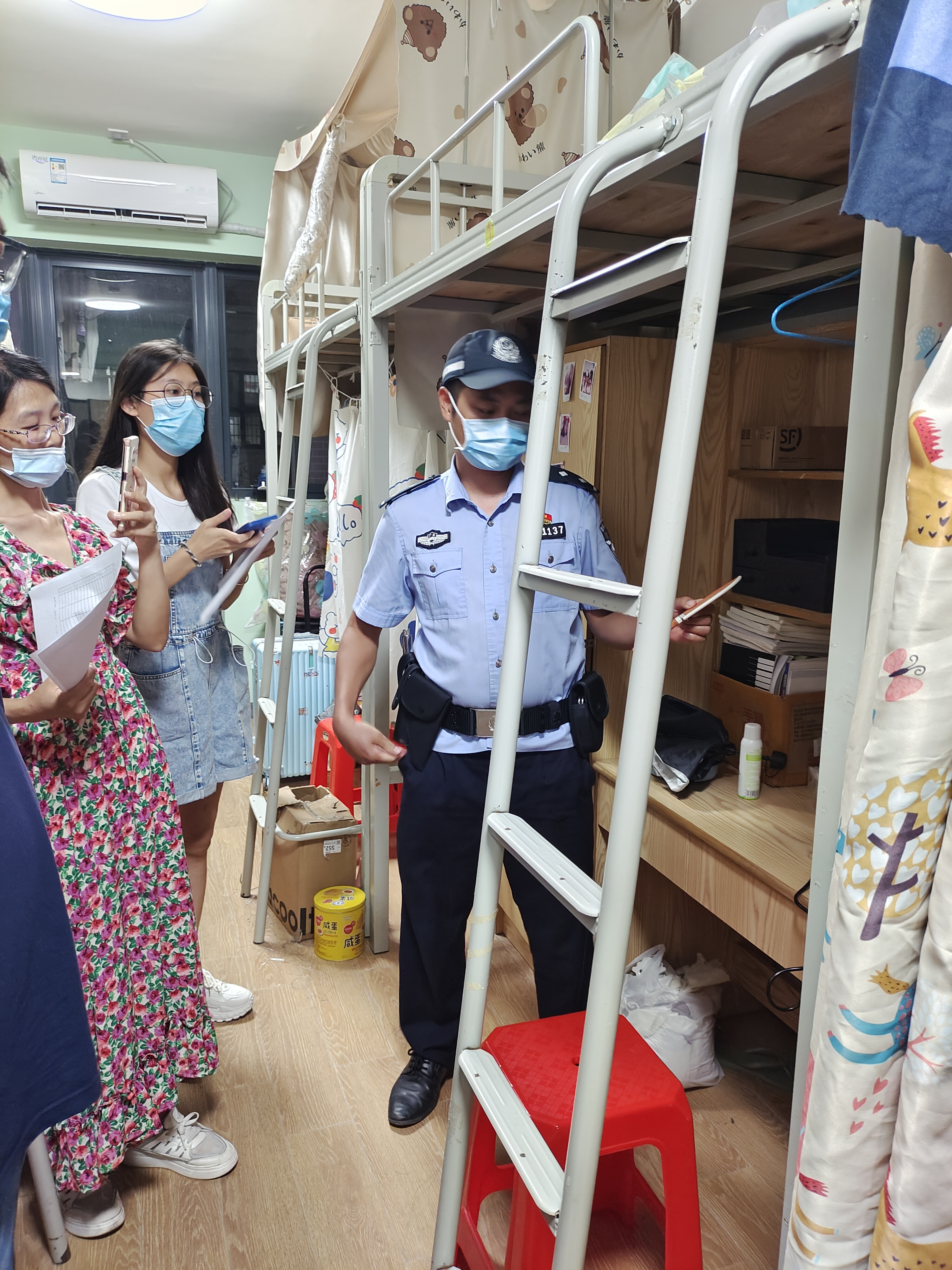 (都楊派出所警官與學校聯(lián)合進行宿舍安全巡查)