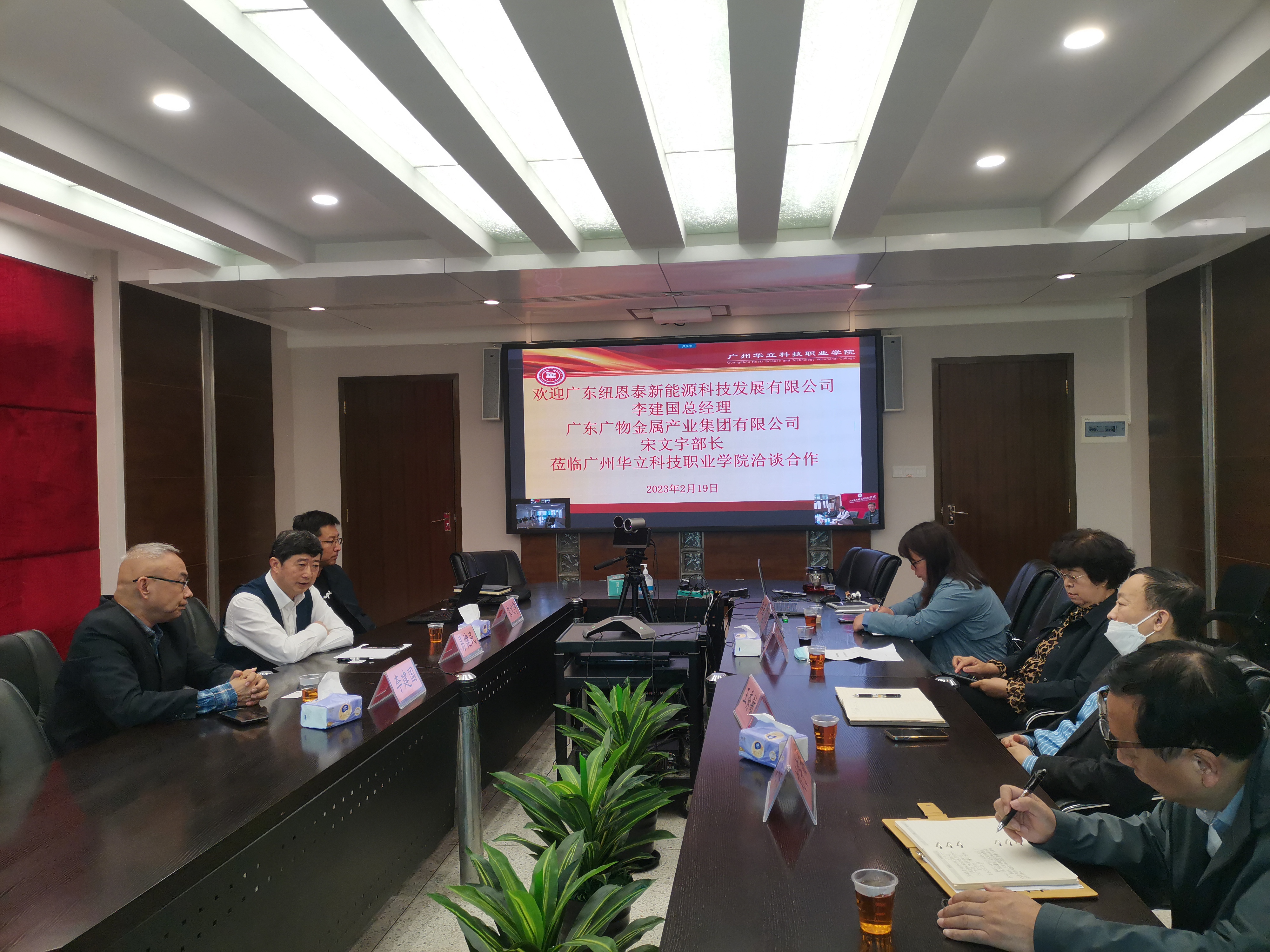 2月19日廣東紐恩泰新能源科技發(fā)展有限公司李建國(guó)副總經(jīng)理、廣東廣物金屬產(chǎn)業(yè)集團(tuán)有限公司宋文宇部長(zhǎng)到訪廣州華立科技職業(yè)學(xué)院。易健民校長(zhǎng)對(duì)企業(yè)來(lái)訪表示歡迎并全程參加,學(xué)校品牌發(fā)展中心、產(chǎn)教融合辦、計(jì)算機(jī)信息工程學(xué)院、電力與智能制造學(xué)院與企業(yè)代表進(jìn)行合作洽談,云浮校區(qū)城建學(xué)院以線上形式進(jìn)行。