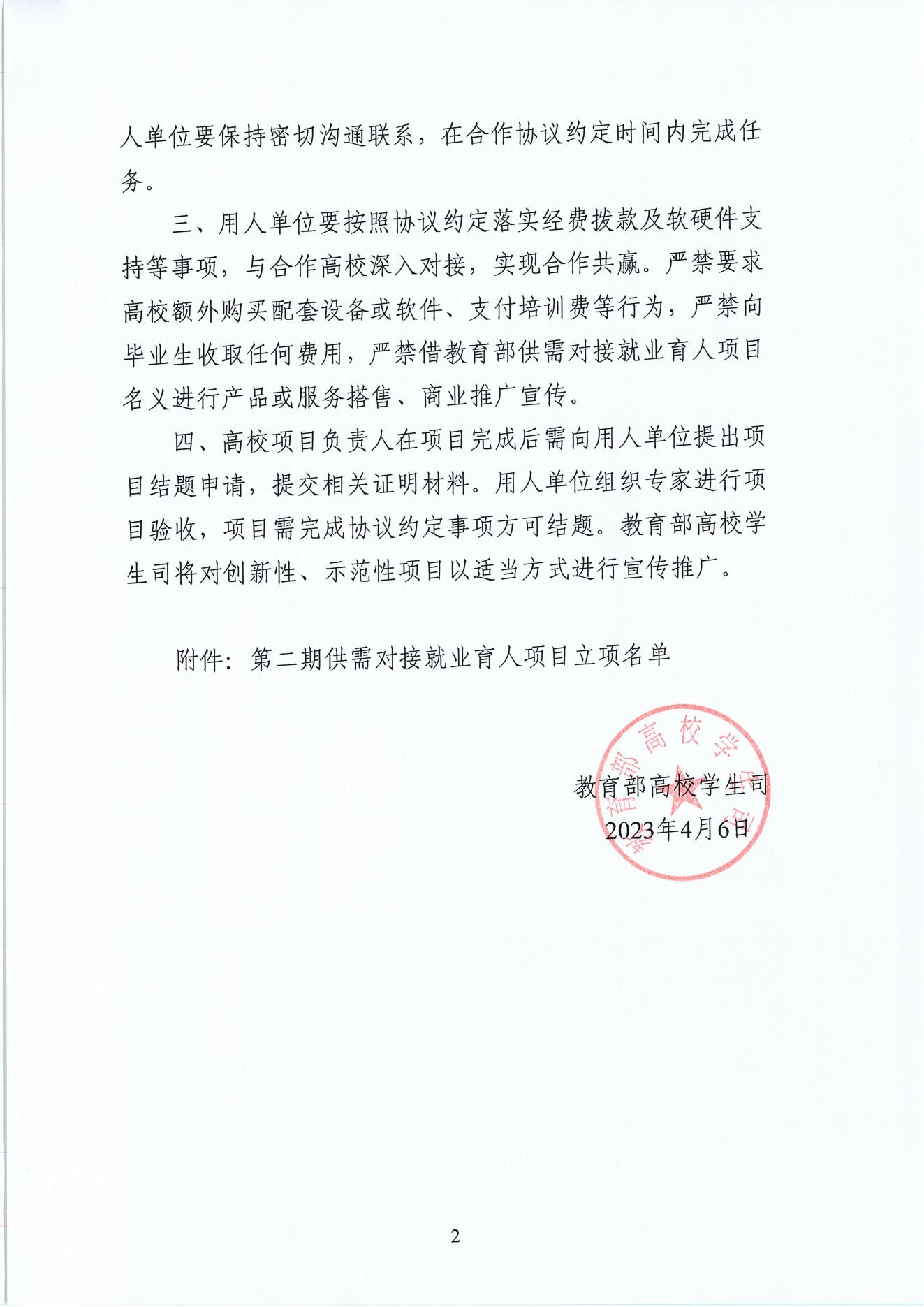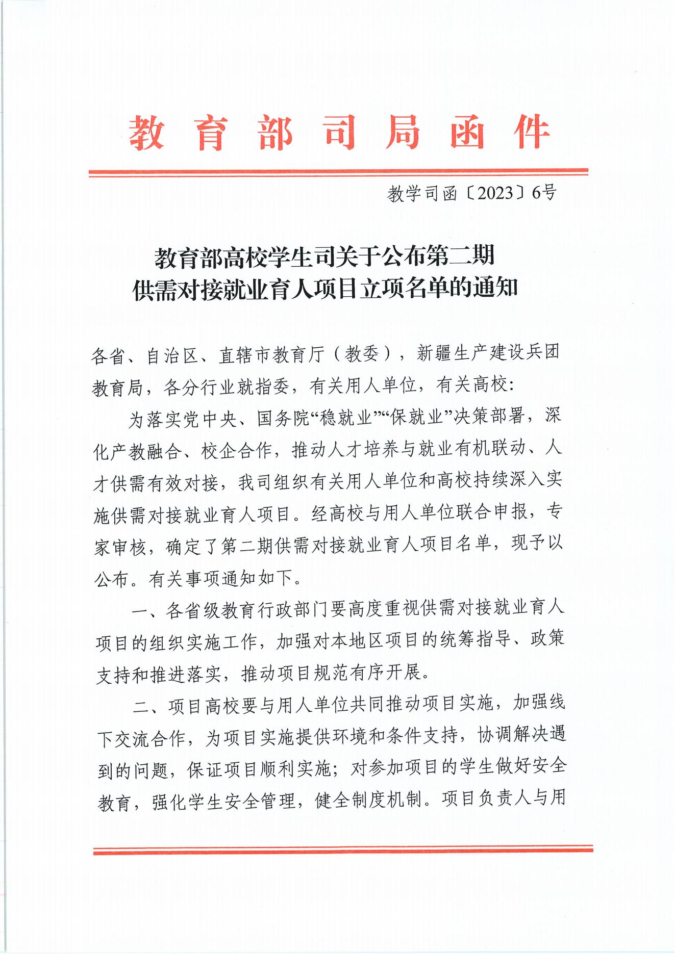 供需對(duì)接就業(yè)育人項(xiàng)目是教育部為落實(shí)黨中央、國(guó)務(wù)院“穩(wěn)就業(yè)”“保就業(yè)”決策部署,由教育部高校學(xué)生司組織發(fā)起,有關(guān)用人單位和高校共同實(shí)施,通過深化產(chǎn)教融合、校企合作,推動(dòng)高校人才培養(yǎng)與就業(yè)有機(jī)聯(lián)動(dòng)、人才供需有效對(duì)接,旨在促進(jìn)高校畢業(yè)生更加充分更高質(zhì)量就業(yè)的重要舉措。項(xiàng)目經(jīng)高校申請(qǐng)、用人單位申報(bào)、專家審核、立項(xiàng)單位信息核查,最終由教育部高校學(xué)生司公示立項(xiàng)名單及項(xiàng)目具體信息。
