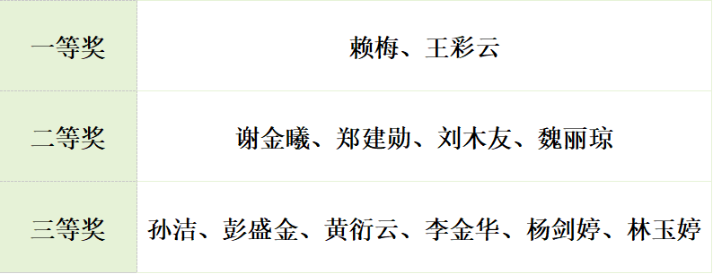 經(jīng)過(guò)激烈角逐,競(jìng)賽最終決出一等獎(jiǎng)2名,二等獎(jiǎng)4名,三等獎(jiǎng)6名。