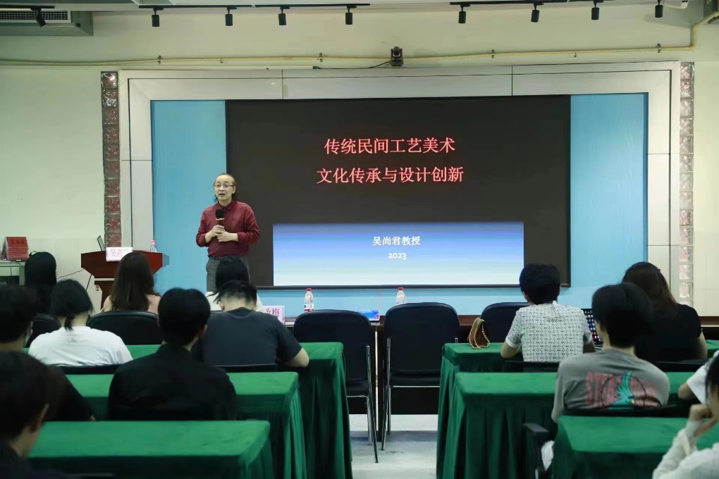 2023年4月13日下午,我校特邀湖南師范大學(xué)美術(shù)學(xué)院博士生導(dǎo)師吳尚君教授在學(xué)校圖書館104報(bào)告廳舉辦了以“傳統(tǒng)民間工藝美術(shù)-文化傳承與設(shè)計(jì)創(chuàng)意”為主題的講座。我校常務(wù)副校長馬俊、藝術(shù)與傳媒學(xué)院副院長陳改梅等出席了本次活動(dòng)。講座由常務(wù)副校長馬俊主持。