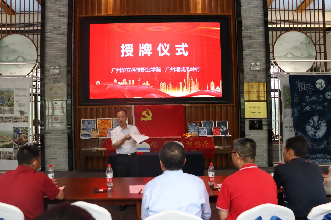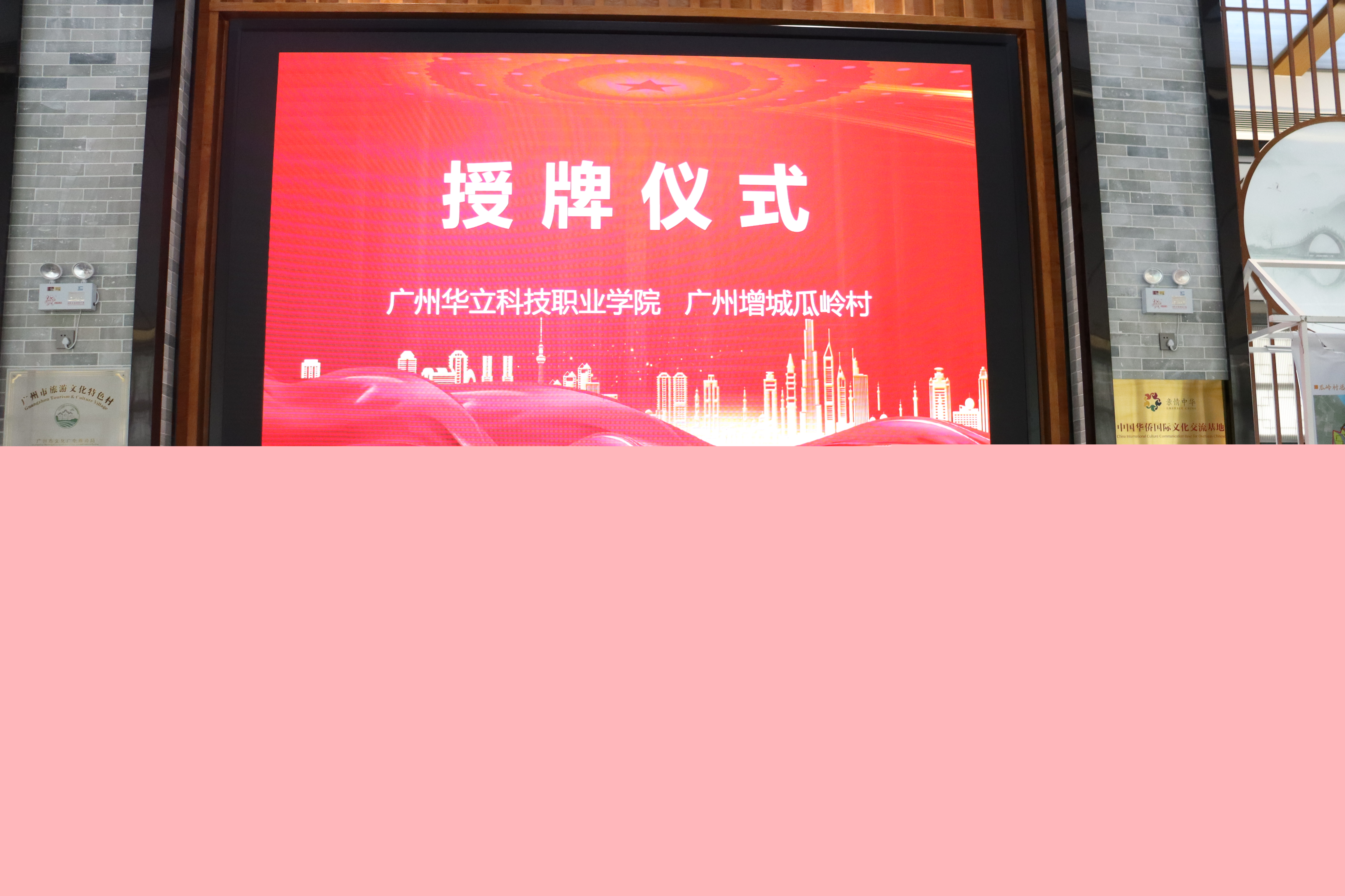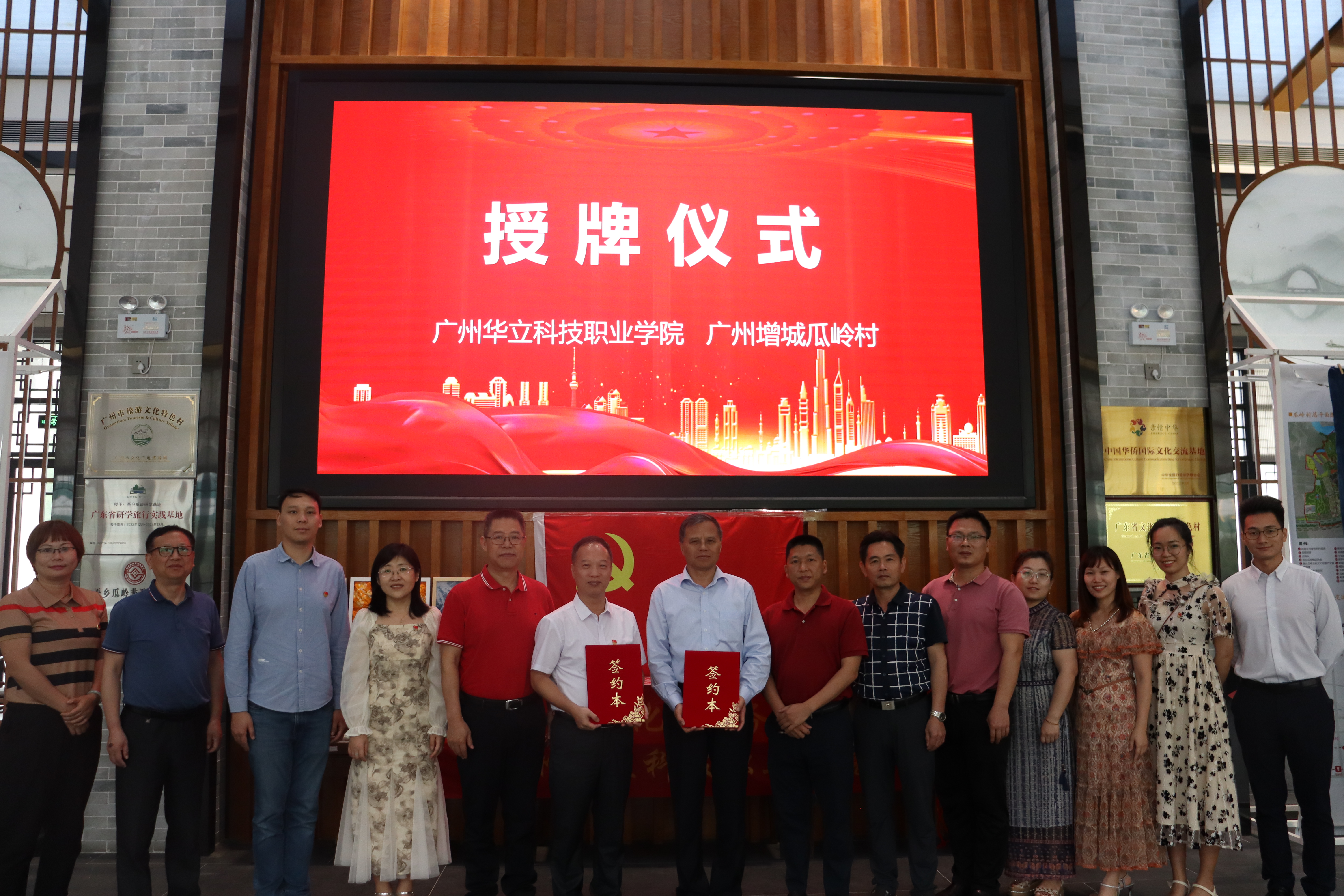 廣州華立科技職業(yè)學(xué)院與廣州瓜嶺古村、廣州吾鄉(xiāng)美地鄉(xiāng)村旅游文化發(fā)展有限公司、廣州瓜嶺僑鄉(xiāng)文化旅游發(fā)展有限公司聯(lián)合舉行簽約授牌儀式