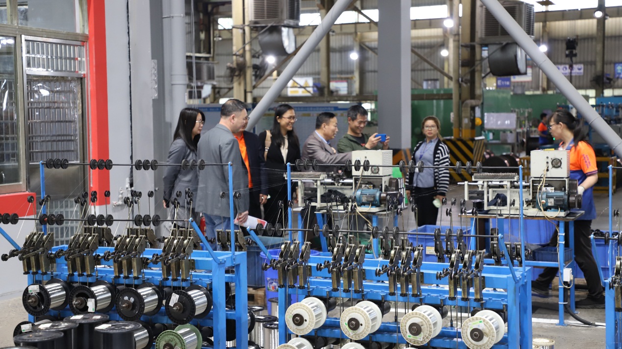 為了進一步了解電線電纜的生產過程,王秀敏院長一行人參觀了電纜的接線生產車間等,對電線電纜生產設備、生產工藝、質量檢驗和崗位需求有了更深的了解。