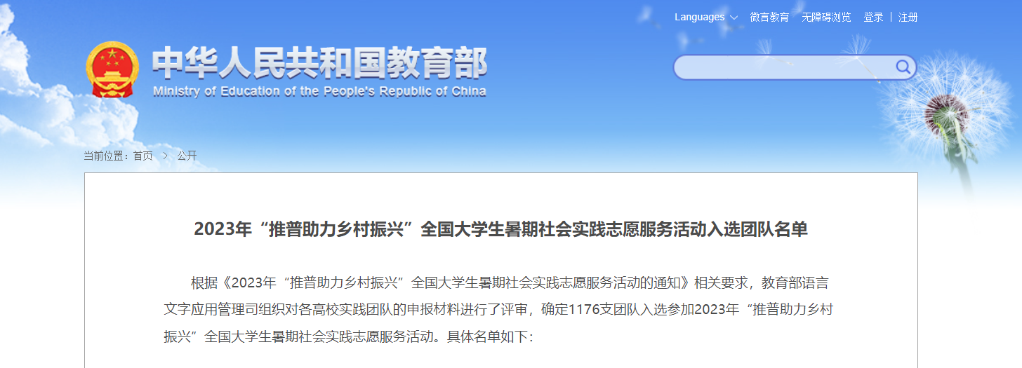 6月27日,教育部發(fā)布《2023年“推普助力鄉(xiāng)村振興”全國大學(xué)生暑期社會實踐志愿服務(wù)活動入選團隊名單》,廣州華立科技職業(yè)學(xué)院兩個團隊入選。教育部公布的入選團隊名單顯示,廣東省民辦高職院校中僅有4個院校的5個團隊入選,我校是唯一一所入選2個團隊的院校!