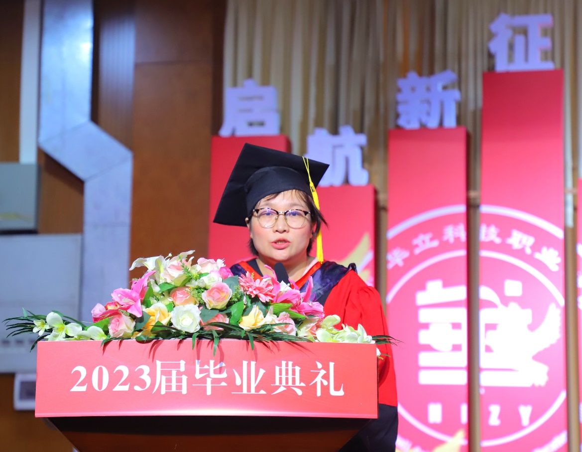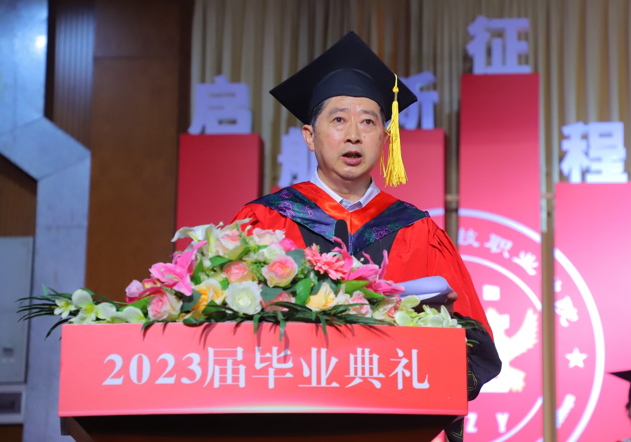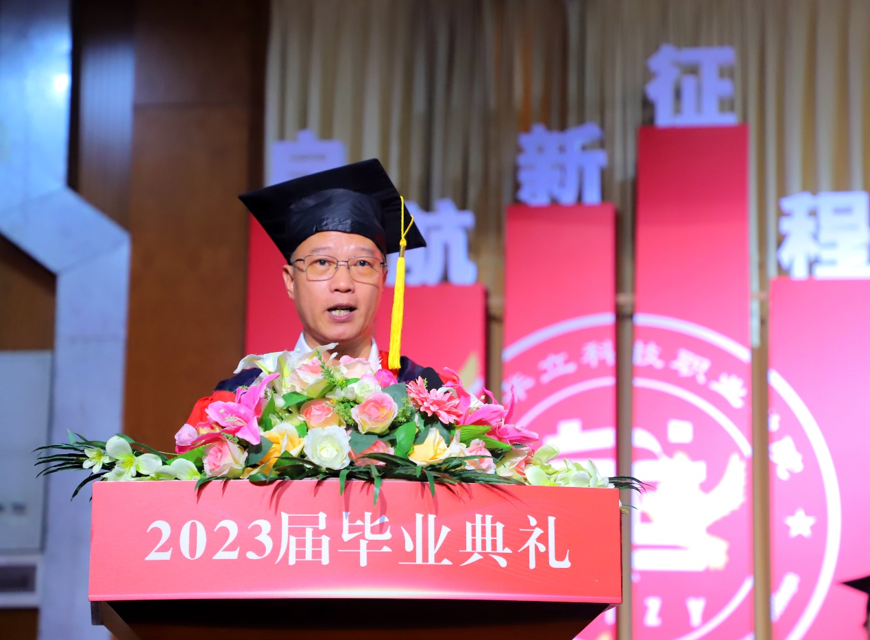 易健民校長對2023屆畢業(yè)生表示了最熱烈的祝賀和最深情的祝福。在即將離開校園,開啟嶄新的人生之旅之際,易校長寄語畢業(yè)生們要牢記“志存高遠(yuǎn),實現(xiàn)自我價值”,要堅持“終身學(xué)習(xí),造就無悔人生”,要“勇于實踐,報效國家社會” 。易校長希望同學(xué)們踏進(jìn)社會后要虛心向能工巧匠學(xué)習(xí),掌握技術(shù)要領(lǐng),傳承“秘籍”“竅門”;又要敢于突破條條框框,大膽革新創(chuàng)造,把每一道工序、每一個項目、每一項工程做細(xì)、做實、做精、做出彩,在平凡的工作崗位上創(chuàng)造不平凡的業(yè)績,以優(yōu)異的技能報效祖國、回饋社會。期待畢業(yè)生們勇敢的放飛青春的夢想,在新征途上展翅高飛。