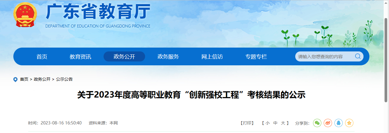 日前,省教育廳公示了2023年度廣東省高職院?!皠?chuàng)新強(qiáng)校工程“考核結(jié)果,全省共90所高職院校接受考核。我校綜合得分82.09分,創(chuàng)歷史新高,較2022年度提高7.95分,在全省B類規(guī)劃高職院校中排名第六,B類民辦高職院校排名第一,充分彰顯了我校綜合辦學(xué)實(shí)力和人才培養(yǎng)水平。