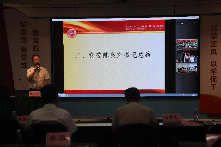 述職報(bào)告以黨委書記陳良聲代表學(xué)校領(lǐng)導(dǎo)班子做了總結(jié)。他指出,本次述職報(bào)告提出的內(nèi)容亮點(diǎn)突出,問(wèn)題深刻,措施有力。報(bào)告內(nèi)容突出了兩校區(qū)之間工作的互相融合、學(xué)校事業(yè)發(fā)展與黨的建設(shè)相融合的特色,也反映了學(xué)校各部門、二級(jí)學(xué)院之間發(fā)展的不充分、不平衡的問(wèn)題。同時(shí),感謝各位中層干部過(guò)去一年的辛苦付出,希望新學(xué)年大家一起繼續(xù)努力,并對(duì)此提出了五點(diǎn)希望:1.要以習(xí)近平總書記世界觀和方法論推動(dòng)學(xué)校發(fā)展;2.通過(guò)本次述職總結(jié)、全面梳理,進(jìn)一步揚(yáng)優(yōu)勢(shì)、強(qiáng)弱項(xiàng)、補(bǔ)短板,全力推進(jìn)學(xué)校的可持續(xù)發(fā)展;3.各部門做好主題教育后續(xù)工作,把主題教育取得的成效轉(zhuǎn)化為推動(dòng)學(xué)??焖?、高質(zhì)量發(fā)展的強(qiáng)大動(dòng)力;4.各二級(jí)學(xué)院把黨建組織優(yōu)勢(shì)轉(zhuǎn)化為推動(dòng)學(xué)院事業(yè)發(fā)展的動(dòng)力;5.落實(shí)學(xué)校工作指南和工作規(guī)范,提高學(xué)校依法辦學(xué)、按章辦事能力,推進(jìn)學(xué)校法治化、規(guī)范化辦學(xué)水平。