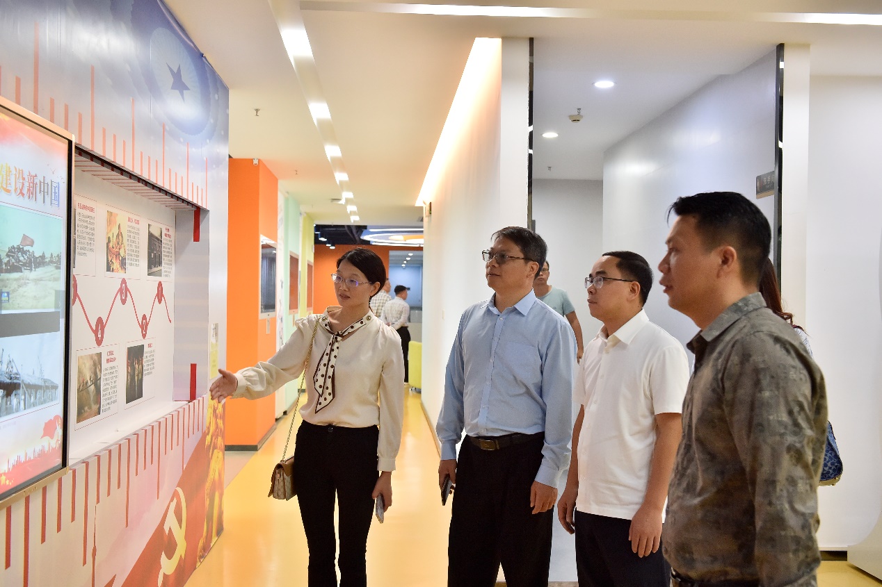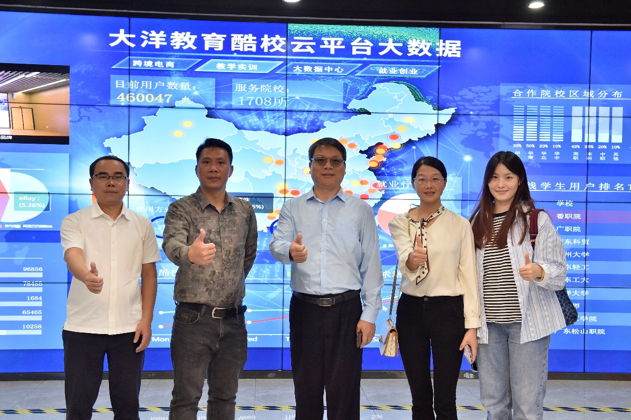 大洋教育陳小龍經(jīng)理帶隊(duì)參觀并介紹大洋教育公司的“酷?!碑a(chǎn)教融合云平臺(tái)、數(shù)字貿(mào)易港產(chǎn)教融合基地、鄉(xiāng)村振興實(shí)戰(zhàn)成果等。