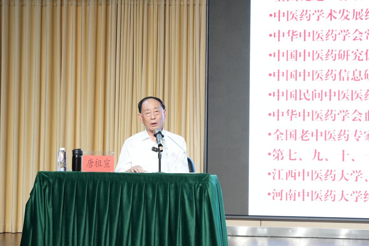 講座現(xiàn)場,唐祖宣向?qū)W校師生分享了自己出身基層、拜師求學(xué)、從醫(yī)的經(jīng)歷,暢談自己的名醫(yī)之路、學(xué)醫(yī)感悟,用自身的豐富的國醫(yī)之路歷程指引青年學(xué)子在行醫(yī)之路上應(yīng)修醫(yī)德、行仁術(shù)、鑄醫(yī)魂,用自身的臨床實踐詳細論述了溫陽法在臨床治療中的應(yīng)用。