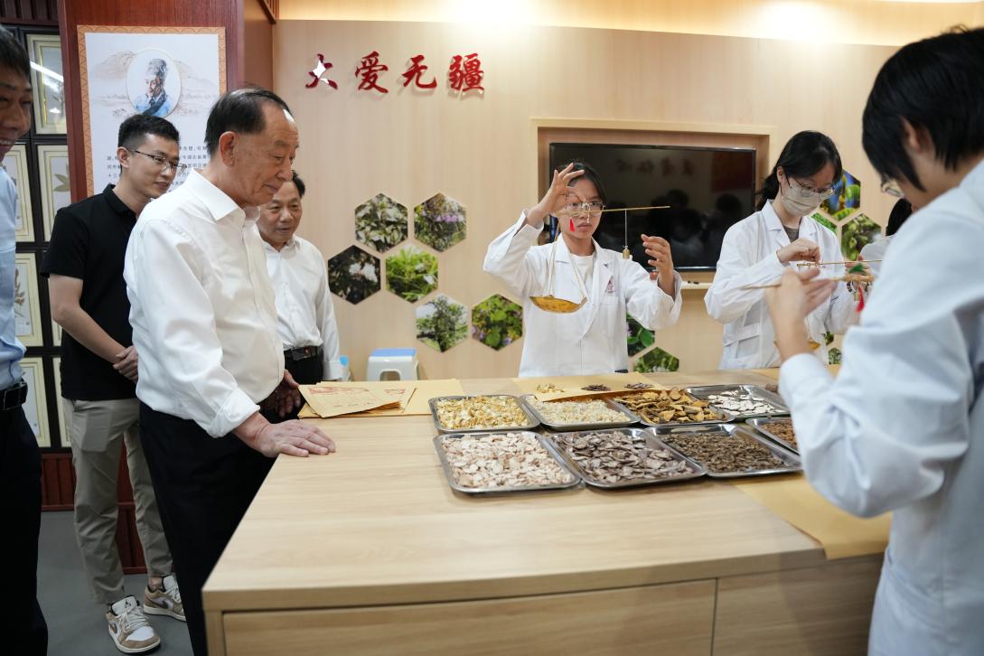 活動中,唐祖宣一行在學(xué)校有關(guān)負責(zé)人的陪同下參觀了中醫(yī)藥學(xué)院中藥標本館、中醫(yī)適宜技術(shù)實驗室、烹飪實操室等實訓(xùn)場所,并于當(dāng)天下午舉辦了“國醫(yī)大師之路”的專題講座。