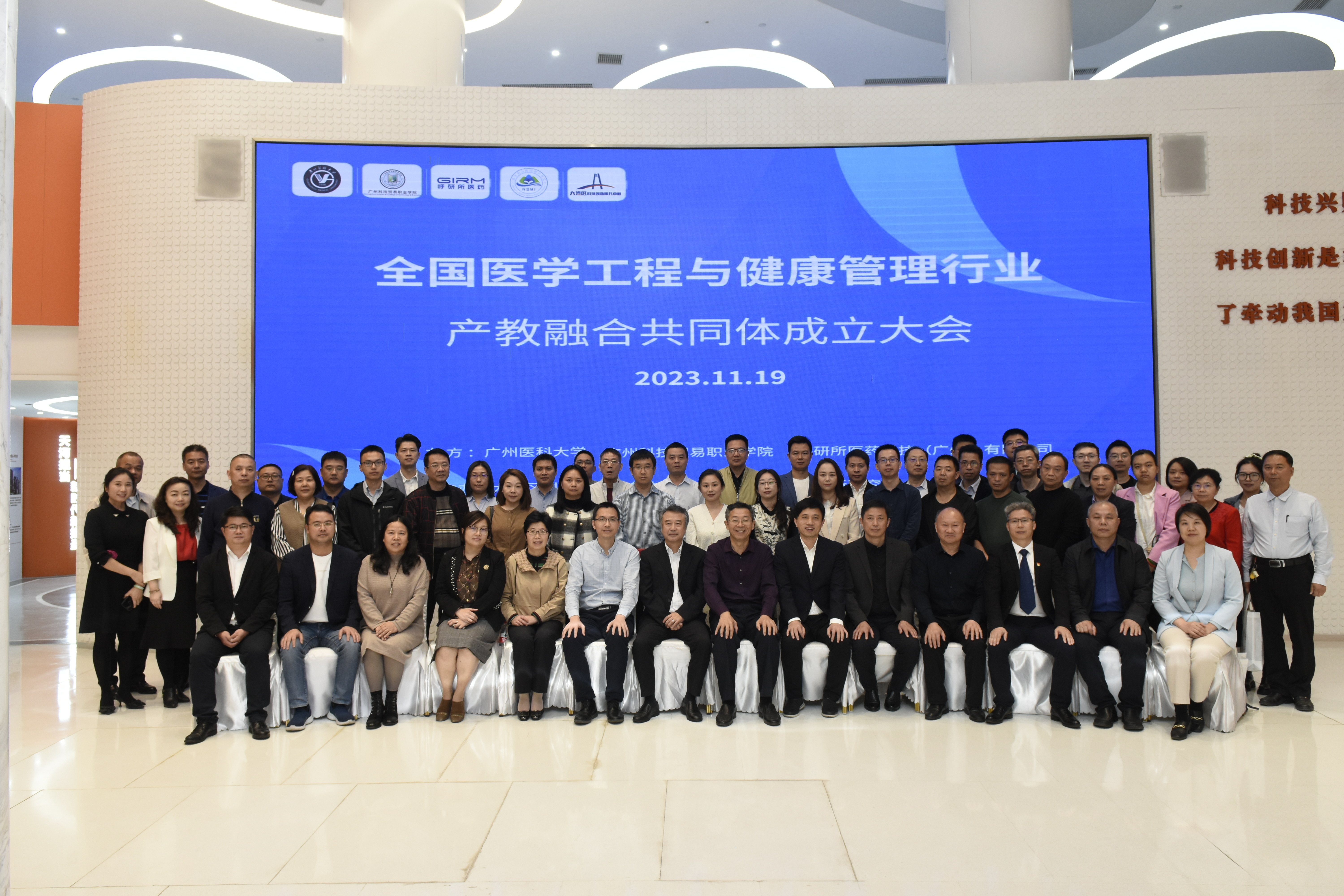 大會(huì)由廣州醫(yī)科大學(xué)、廣州科技貿(mào)易職業(yè)學(xué)院、呼研所醫(yī)藥科技(廣州)有限公司主辦,廣東省南山醫(yī)藥創(chuàng)新研究院、大灣區(qū)科技創(chuàng)新服務(wù)中心聯(lián)合主辦,共同組建全國(guó)醫(yī)學(xué)工程與健康管理行業(yè)產(chǎn)教融合共同體的各行業(yè)組織、學(xué)校、科研機(jī)構(gòu)、上下游企業(yè)等單位受邀參加了此次共同體成立大會(huì),參會(huì)單位60多家,與會(huì)代表約100人。大會(huì)旨在全面貫徹落實(shí)習(xí)近平總書(shū)記關(guān)于教育強(qiáng)國(guó)和健康中國(guó)的重要論述,深入貫徹落實(shí)黨中央有關(guān)決策部署,聚焦“產(chǎn)教高度匹配、服務(wù)高效對(duì)接、支撐全行業(yè)發(fā)展”的戰(zhàn)略目標(biāo),建立健全共同體實(shí)體化運(yùn)行機(jī)制和供需對(duì)接機(jī)制,聯(lián)合開(kāi)展人才培養(yǎng)、開(kāi)發(fā)教學(xué)資源、開(kāi)展技術(shù)攻關(guān),共同推進(jìn)我國(guó)高等教育和職業(yè)教育高質(zhì)量發(fā)展。