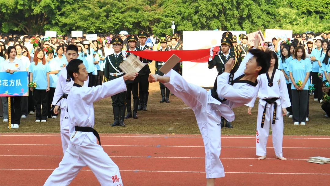 開幕式上,國旗護(hù)衛(wèi)隊(duì)、鮮花方隊(duì)、紅旗方隊(duì)、機(jī)關(guān)教師代表隊(duì)、各二級(jí)學(xué)院師生代表隊(duì)、志愿者方隊(duì)和裁判員方隊(duì)伴隨著歡樂的音樂依次入場(chǎng)。虎虎生風(fēng)的旗幟、鏗鏘有力的步伐、響徹云霄的口號(hào),充分展現(xiàn)了全校師生自強(qiáng)自信、拼搏奮進(jìn)、團(tuán)結(jié)向上、樂觀積極的精神風(fēng)貌。最后,國防教育協(xié)會(huì)、跆拳道協(xié)會(huì)、街舞協(xié)會(huì)的精彩表演將開幕式推向了高潮。
