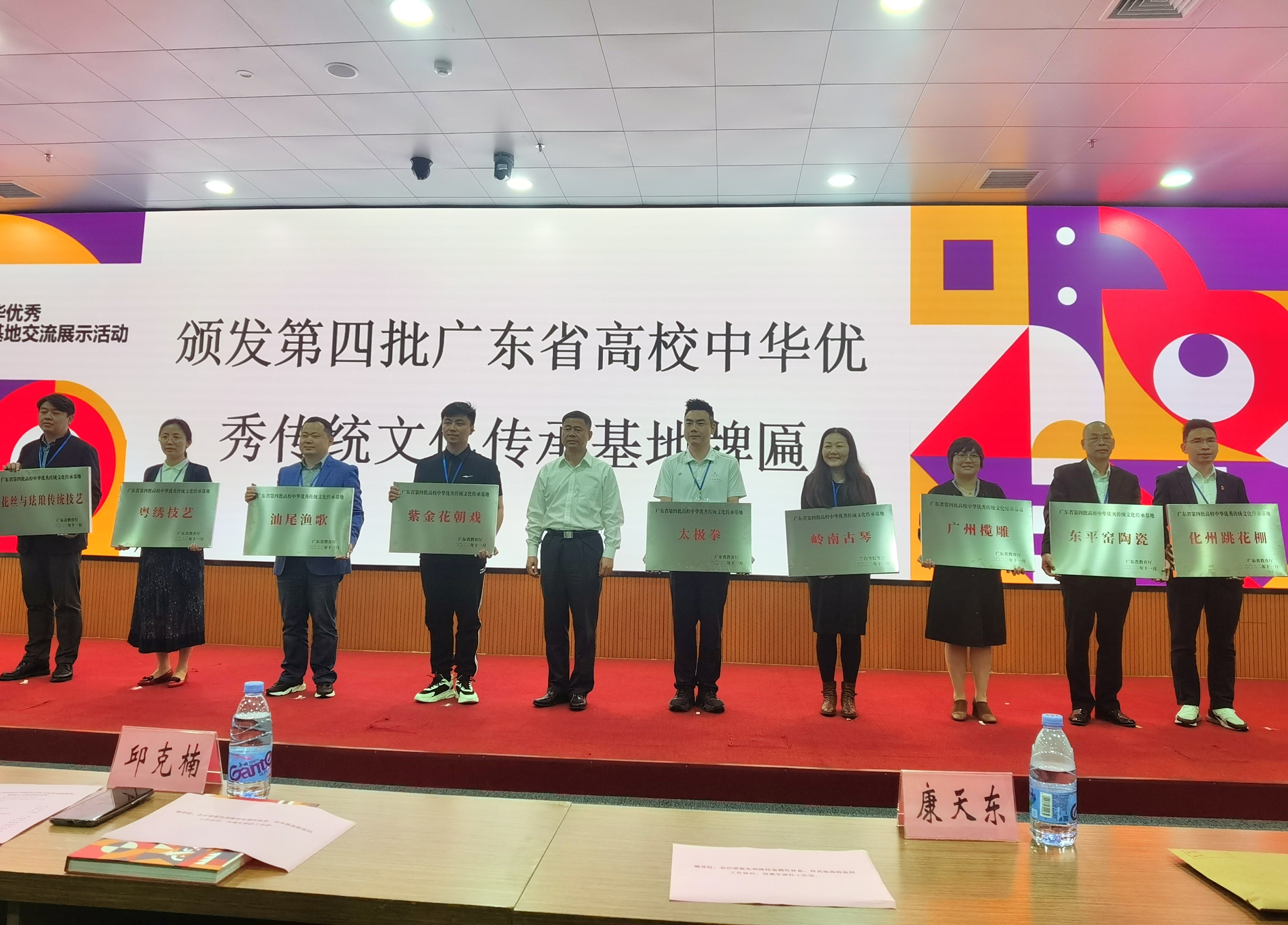 由廣東省教育廳主辦、五邑大學(xué)承辦的全省高校中華優(yōu)秀傳統(tǒng)文化傳承基地交流展示活動(dòng)3月20日在美麗的僑鄉(xiāng)江門舉行,全省45所高校齊聚一堂,共享中華優(yōu)秀傳統(tǒng)文化盛宴,多維度展示民族文化的魅力以及各高校傳承保護(hù)、創(chuàng)新發(fā)展中華優(yōu)秀傳統(tǒng)文化的責(zé)任擔(dān)當(dāng)和建設(shè)成果。省教育廳二級(jí)巡視員邱克楠蒞臨活動(dòng)現(xiàn)場(chǎng)并為入選第四批傳承基地的高校授牌。我校常務(wù)副校長(zhǎng)馬俊捧回“廣州欖雕”傳承基地牌匾。