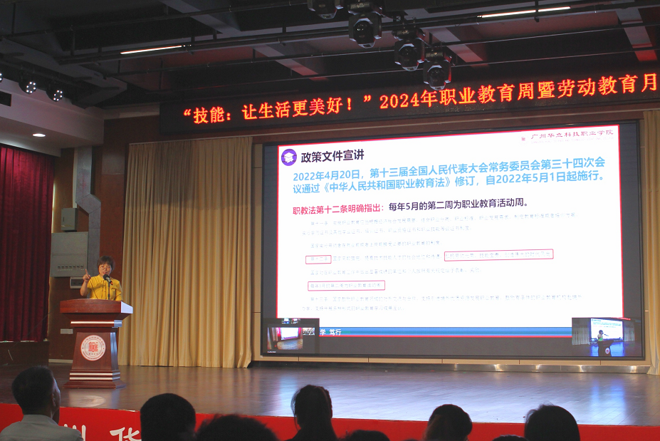 為深入學習貫徹習近平新時代中國特色社會主義思想,用實際行動踐行黨的二十大精神和習近平總書記關(guān)于職業(yè)教育的重要指示批示精神,大力弘揚“勞動光榮、技能寶貴、創(chuàng)造偉大”的時代風尚,充分展示我校的職業(yè)教育水平,5月8日我校廣州、云浮兩校區(qū)連線同步舉辦了2024年職業(yè)教育周暨勞動教育月動員大會?;顒又黝}為:“技能:讓生活更美好”。