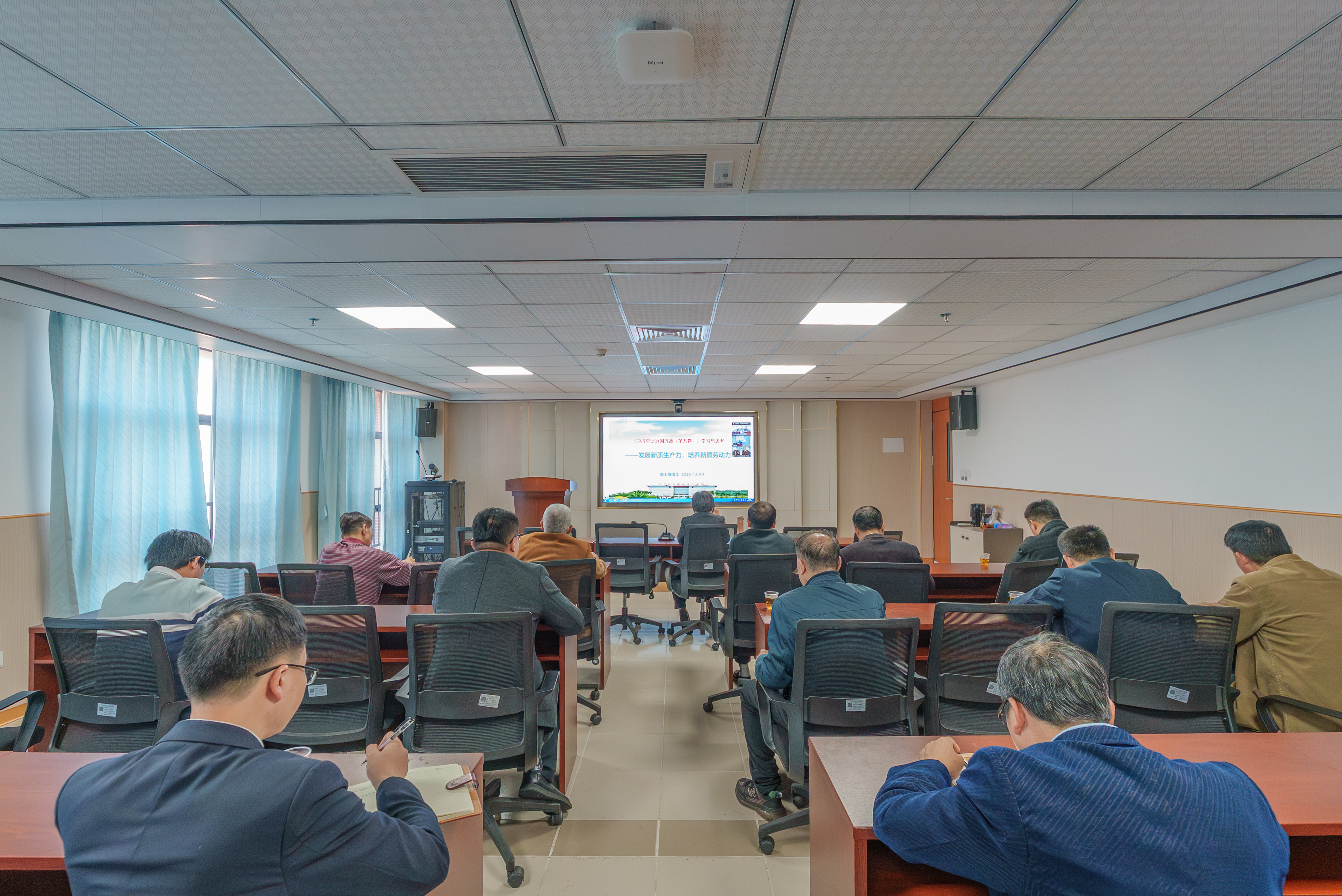 季博士的授課既有思想理論高度,又有教學(xué)實(shí)踐經(jīng)驗(yàn),既體現(xiàn)出對高職教育發(fā)展的前瞻性視野,又融入了個(gè)人深厚的教育情懷。講授內(nèi)容緊密契合職業(yè)教育發(fā)展實(shí)際,特別是將“因地制宜發(fā)展新質(zhì)生產(chǎn)力”的重要指示精神與職教專業(yè)課建設(shè)、思政育人路徑創(chuàng)新有機(jī)結(jié)合,為我們提供了可行的實(shí)踐指南。對全體與會(huì)同志而言,是一次深刻的思想啟迪與實(shí)踐推動(dòng),必將有效促進(jìn)我校教職工進(jìn)一步深化理論學(xué)習(xí)、提升育人能力,切實(shí)把新理念、新要求融入專業(yè)教學(xué)和人才培養(yǎng)全過程,堅(jiān)決扛起為黨育人、為國育才的時(shí)代重任與光榮使命。