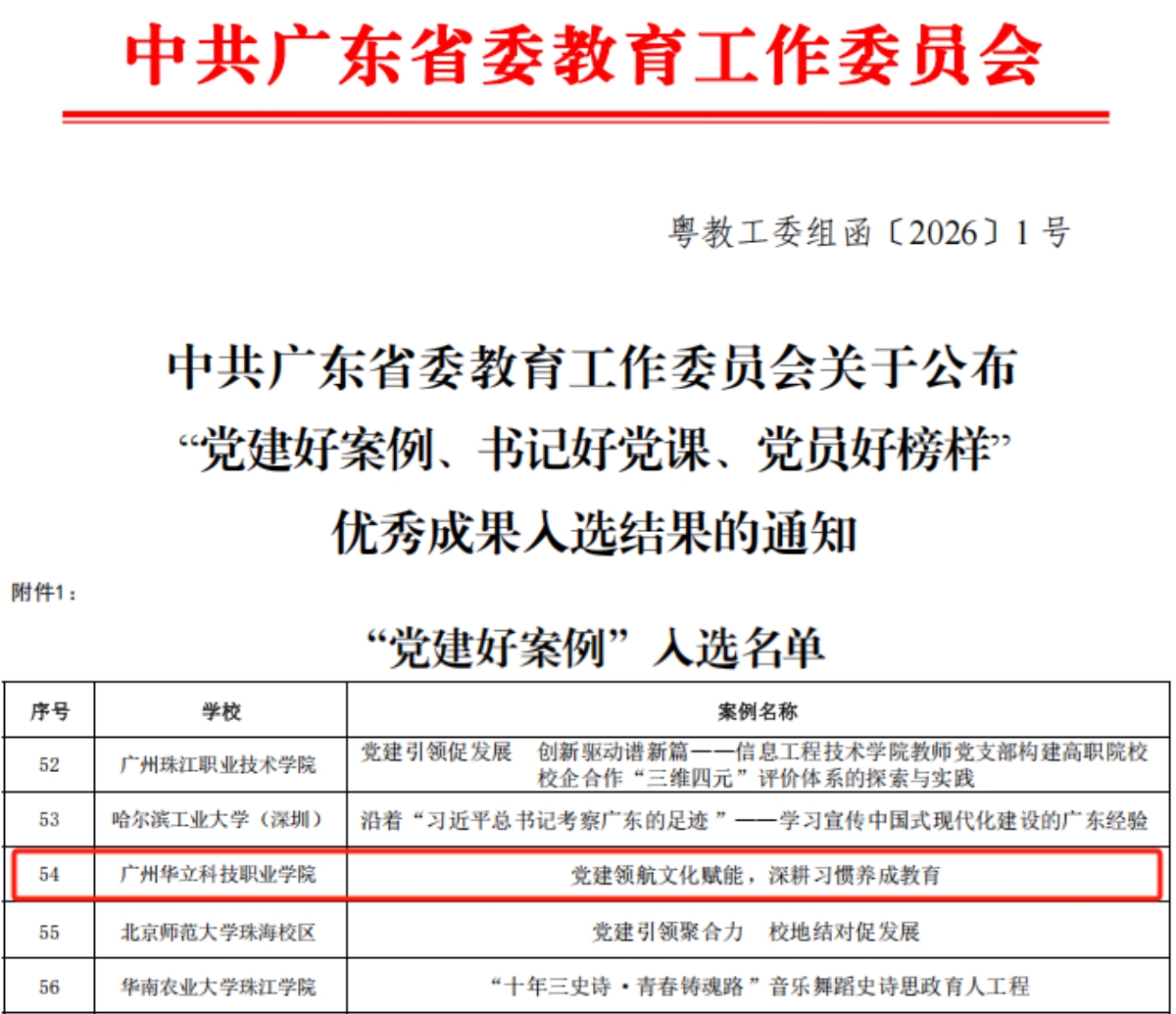 廣州華立科技職業(yè)學(xué)院黨建案例成功入選省級(jí)“黨建好案例”