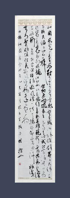 作品以經(jīng)典詞牌《沁園春?雪》為底文,以草書條幅形式揮毫創(chuàng)作。線條遒勁流暢、開合有度,墨色濃淡相間、干濕有致,既彰顯了扎實(shí)的書法功底與藝術(shù)審美,又以“雪韻繪鄉(xiāng)村”的創(chuàng)作立意,呼應(yīng)鄉(xiāng)村純凈之美與時(shí)代新顏,完美契合“多彩鄉(xiāng)村向新而行”的活動(dòng)主題,意境深遠(yuǎn),感染力強(qiáng)。