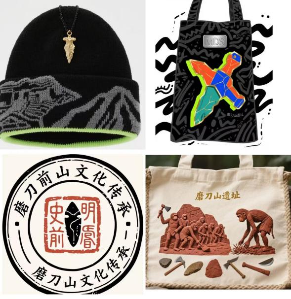 作品深挖廣東磨刀山遺址的史前文化底蘊(yùn),以“遠(yuǎn)古力量”為核心創(chuàng)意,打造了系列文創(chuàng)產(chǎn)品:從融入石斧、遺址元素的帽子,到印刻先民生活場景的抽繩袋,再到融合石錛符號的文化印章,將嶺南遠(yuǎn)古文明與現(xiàn)代設(shè)計(jì)語言深度融合,讓沉睡的遺址文化“活起來”,既兼具實(shí)用價(jià)值與文化內(nèi)涵,又助力鄉(xiāng)土文化傳承傳播,生動(dòng)踐行了“多彩鄉(xiāng)村向新而行”的活動(dòng)理念。