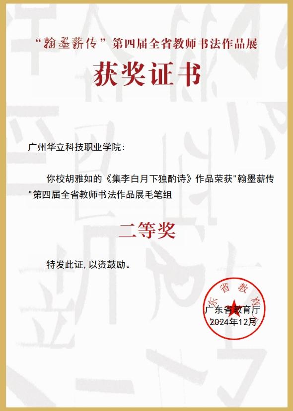 “翰墨薪傳”第四屆全省教師書法作品展 二等獎