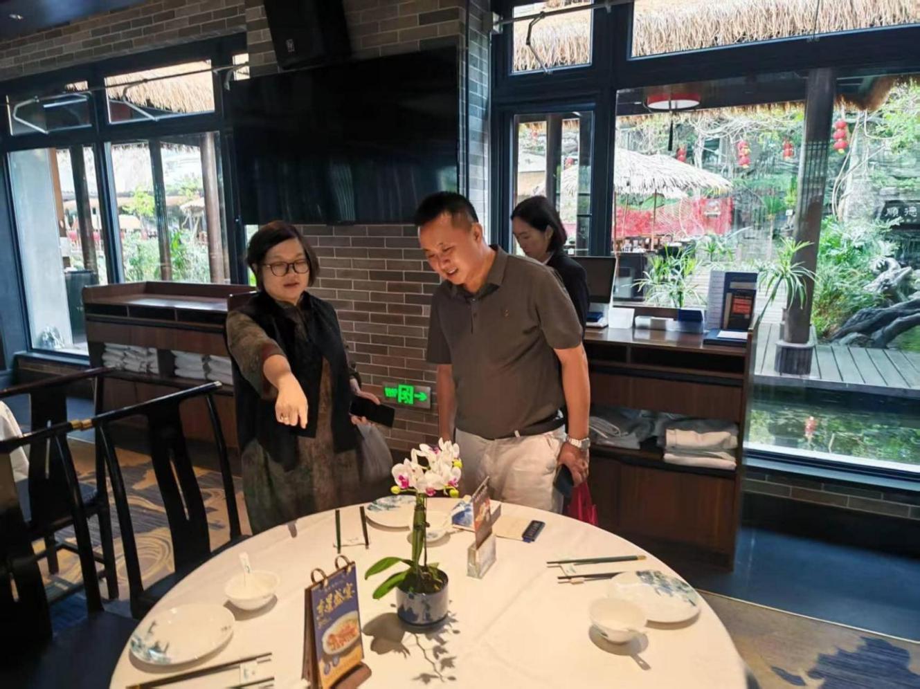 座談結(jié)束后,廖明婕負(fù)責(zé)人帶領(lǐng)馬俊副校長一行參觀順德漁村華僑城旗艦店,實地走訪門店中餐廳、戶外花園用餐區(qū)、中空宴會廳、婚禮預(yù)約中心及漁村手信售賣區(qū),了解門店運營模式與學(xué)生實習(xí)環(huán)境,廖總還準(zhǔn)備了漁村特色手信給我校到訪人員品嘗。校領(lǐng)導(dǎo)對門店的硬件設(shè)施、服務(wù)品質(zhì)與實習(xí)環(huán)境給予高度認(rèn)可,進一步堅定了雙方的合作信心。