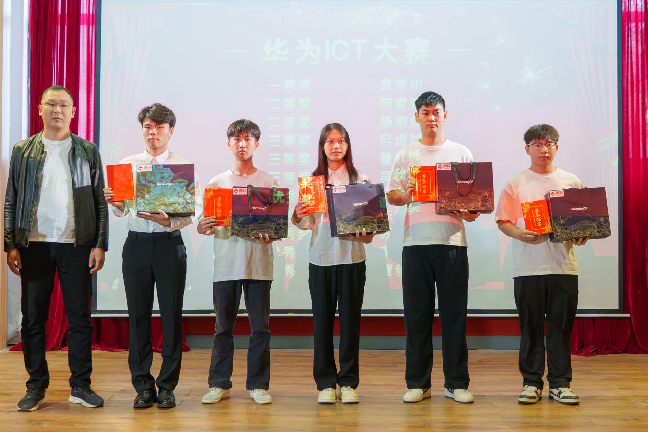 在隨后舉行的頒獎(jiǎng)典禮上,大會(huì)依次對在華為ICT大賽、網(wǎng)站項(xiàng)目開發(fā)競賽、全國大學(xué)生職業(yè)規(guī)劃大賽三大賽事中榮獲一、二、三等獎(jiǎng)及優(yōu)秀獎(jiǎng)的同學(xué)進(jìn)行了表彰。與會(huì)領(lǐng)導(dǎo)和企業(yè)嘉賓分別為獲獎(jiǎng)學(xué)生頒獎(jiǎng),現(xiàn)場掌聲不斷,氣氛熱烈。大會(huì)還頒發(fā)了“優(yōu)秀指導(dǎo)老師”與“優(yōu)秀組織獎(jiǎng)”,感謝他們在賽事組織與學(xué)生培養(yǎng)中的辛勤付出。