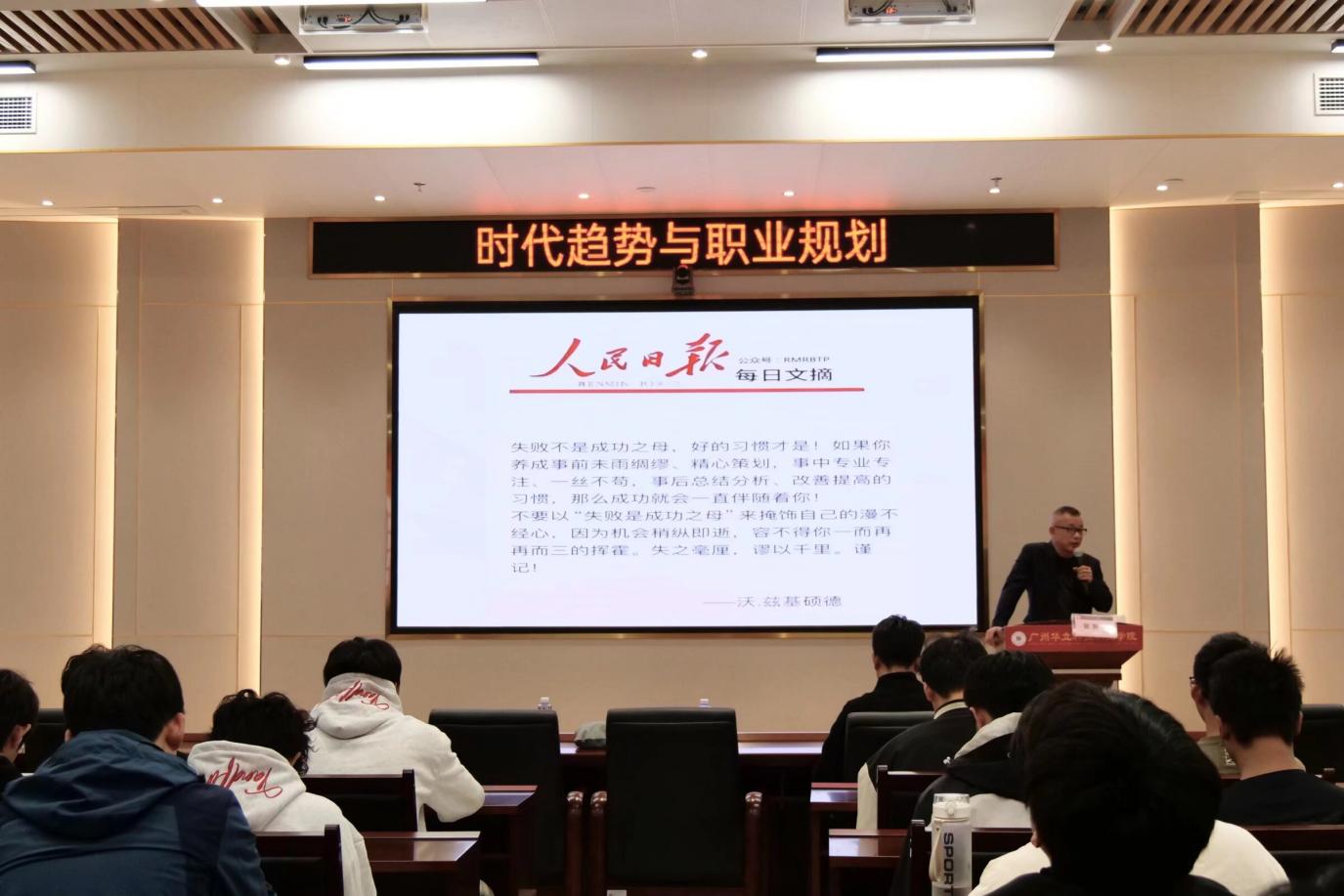 在解讀產(chǎn)業(yè)趨勢的同時,張董事長結(jié)合企業(yè)用人需求與行業(yè)變革現(xiàn)狀,重點分析了職業(yè)市場的潛在變化。他提到,隨著自動化、智能化技術(shù)在產(chǎn)業(yè)中的應(yīng)用,出租車司機、代駕、傳統(tǒng)快遞及外賣配送等職業(yè)將面臨淘汰風(fēng)險;公務(wù)員、教師、醫(yī)護等行業(yè)也將因技術(shù)賦能與人口結(jié)構(gòu)調(diào)整,迎來隊伍優(yōu)化與能力升級需求。針對這一趨勢,他從產(chǎn)教融合視角出發(fā),為學(xué)子們提出職業(yè)規(guī)劃“四大核心選擇”:一是錨定“對的賽道”,緊扣國家產(chǎn)業(yè)政策導(dǎo)向、技術(shù)發(fā)展趨勢與人口結(jié)構(gòu)變化,優(yōu)先選擇與戰(zhàn)略性新興產(chǎn)業(yè)、未來產(chǎn)業(yè)相關(guān)的領(lǐng)域;二是選準(zhǔn)“對的平臺”,結(jié)合自身職業(yè)目標(biāo),權(quán)衡校企合作項目、實習(xí)實踐機會,在大企業(yè)的規(guī)范體系或中小企業(yè)的靈活空間中找到成長支點;三是結(jié)伴“對的伙伴”,在學(xué)習(xí)與實踐中主動鏈接行業(yè)導(dǎo)師、優(yōu)秀同窗,借助團隊力量提升綜合能力;四是堅持“持續(xù)學(xué)習(xí)”,緊跟產(chǎn)業(yè)技術(shù)更新節(jié)奏,通過校企聯(lián)合培訓(xùn)、技能認(rèn)證等方式,不斷迭代知識體系,適應(yīng)產(chǎn)業(yè)發(fā)展需求。