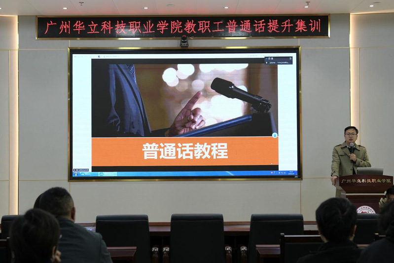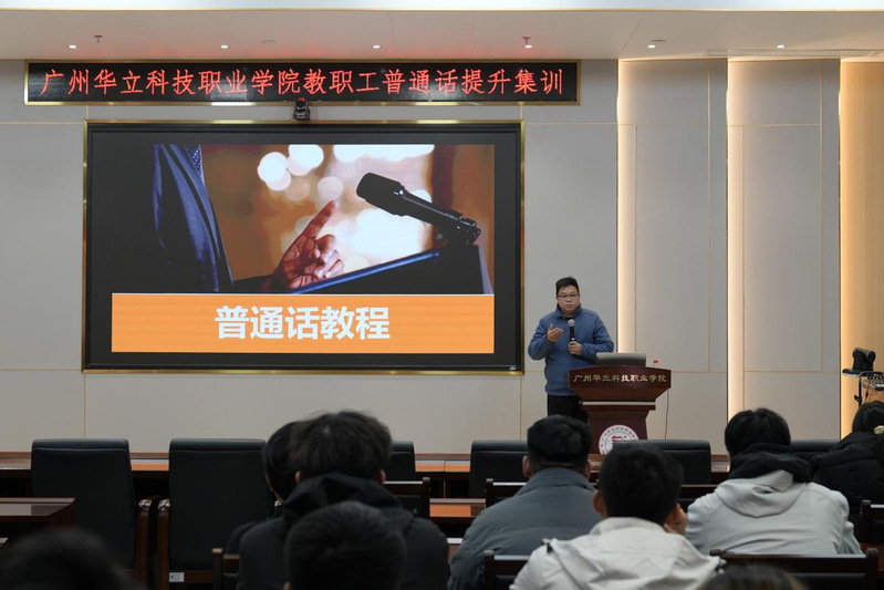 為提升教職工普通話應用水平,強化教育教學語言規(guī)范,近日,廣州華立科技職業(yè)學院開展教職工普通話提升集訓。學校人事處處長鐘文浩、藝術與傳媒學院院長朱君到場參會,全校各部門教職工積極參訓。