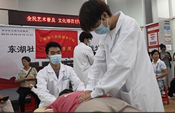 2.杏林惠民?中醫(yī)藥文化進萬家活動。依托中醫(yī)藥協(xié)會和體育與健康管理協(xié)會,組織師生進社區(qū)、養(yǎng)老院、鄉(xiāng)鎮(zhèn)村開展義診,提供體質(zhì)辨識、推拿按摩理療服務(wù);同步開展中醫(yī)藥科普講座、養(yǎng)生知識宣傳,踐行公益,弘揚中醫(yī)藥文化。
