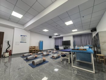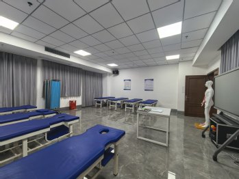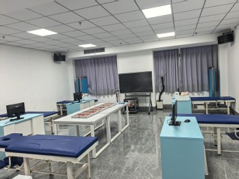 4 | 針灸推拿實訓室 | 用于針灸學、推拿學、中醫(yī)適宜技術(shù)等課程的教學與實訓 | 按摩床、治療車、針刺模擬人、推拿模擬人、十四經(jīng)穴模型、紅外理療燈、立式煙霧凈化器等 | 150 |