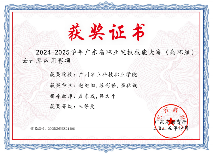 指導(dǎo)學(xué)生比賽獲獎(jiǎng)多項(xiàng),包括省職業(yè)技能大賽、挑戰(zhàn)杯、2025-帶一路暨金磚國(guó)家技能發(fā)展與技術(shù)創(chuàng)新大賽、廣東省大學(xué)生計(jì)算機(jī)設(shè)計(jì)大賽、中國(guó)機(jī)器人及人工智能大賽、華為ICT大賽、藍(lán)橋杯、大唐杯等。