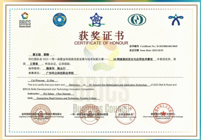 (圖17 5G網(wǎng)絡(luò)測(cè)試優(yōu)化與應(yīng)用技術(shù)全國(guó)三等獎(jiǎng)) |