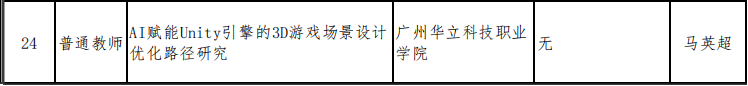 《AI賦能Unity引擎的3D游戲場景設(shè)計優(yōu)化路徑研究》(負責人:馬英超),關(guān)注人工智能技術(shù)在游戲美術(shù)設(shè)計流程中的具體應用與效率提升。