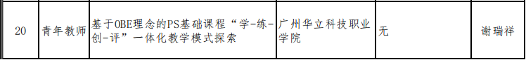 《基于OBE理念的PS基礎(chǔ)課程“學-練-創(chuàng)-評”一體化教學模式探索》(負責人:謝瑞祥),該課題聚焦基礎(chǔ)技能課程,探索以成果為導向的一體化教學模式改革。