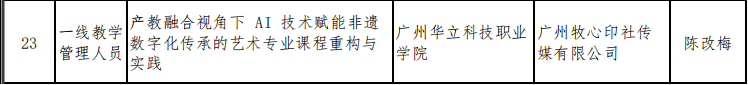 《產(chǎn)教融合視角下AI技術(shù)賦能非遺數(shù)字化傳承的藝術(shù)專業(yè)課程重構(gòu)與實踐》(負責人:陳改梅),與廣州本地文化企業(yè)合作,研究如何利用AI技術(shù)助力非物質(zhì)文化遺產(chǎn)的數(shù)字化保護與教學轉(zhuǎn)化。